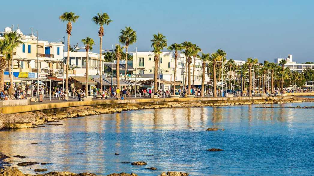 Opposite a stretch of five star hotels and resorts, and the blue flag-awarded beaches of Pafos