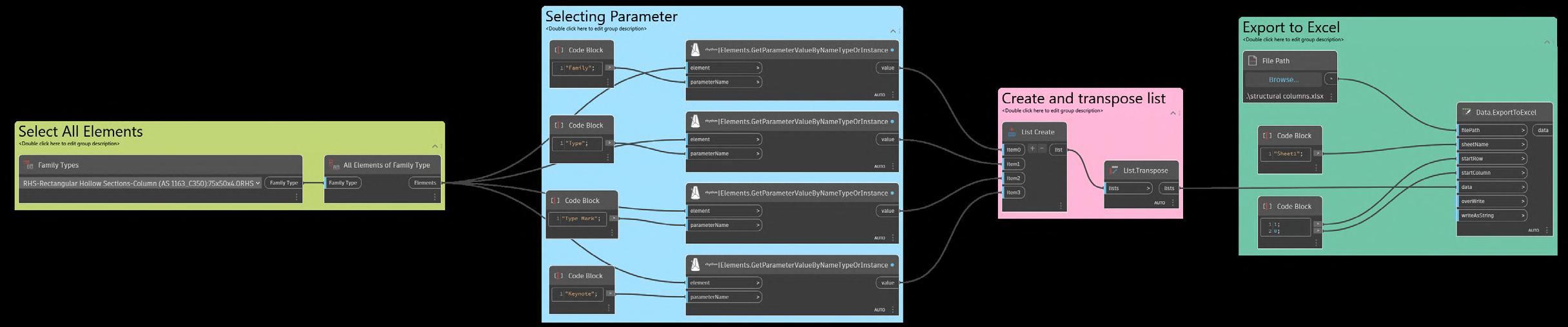 Dynamo script that pushes and pulls data from Excel Documents to a structural element Exporting into Excel