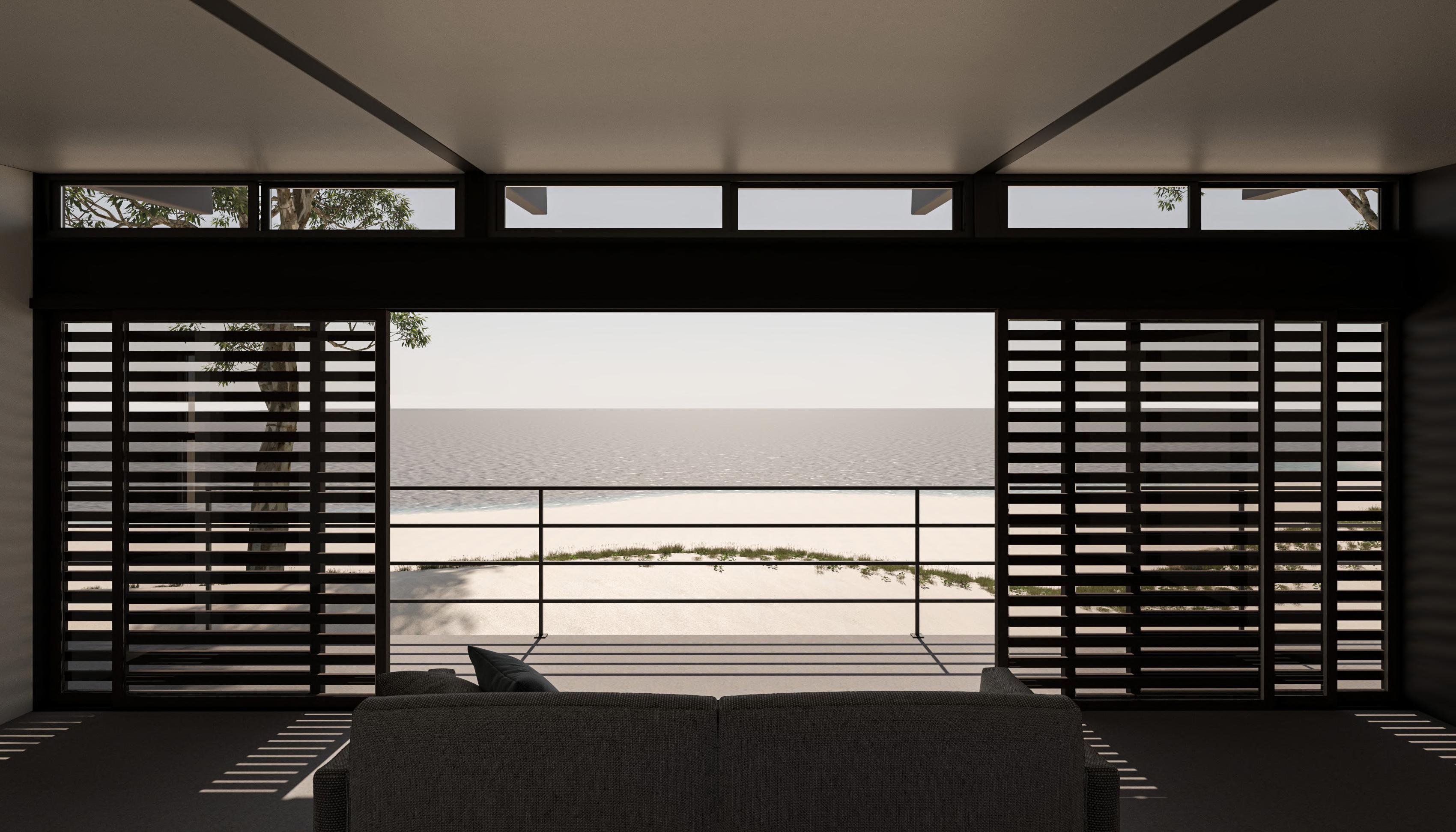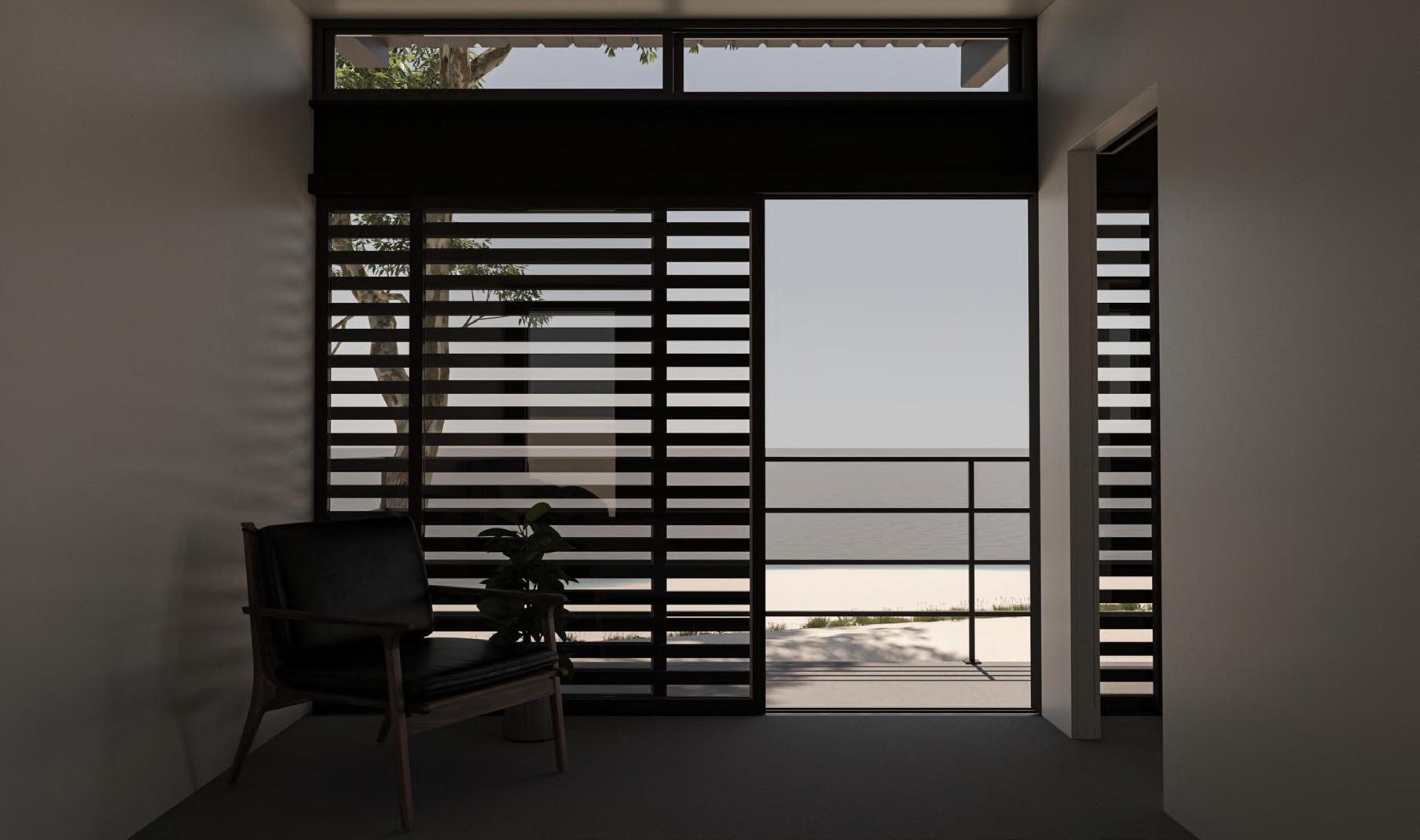 Residential unit superimposed spanning across residential units and bus port. Creates a wall to reduce impact on internal environment from adjacent tall buildings.