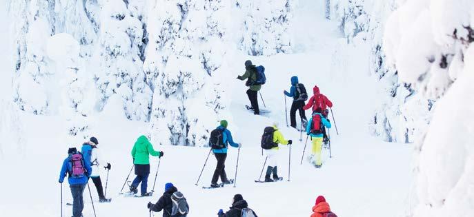 2. Tag Sie schnallen sich die Schneeschuhe an und erkunden mit einem Guide die Winterlandschaft. Anfangs gibt es viel zu lachen über die unbeholfenen ersten Gehversuche, aber schnell gewöhnt man sich an den Bewegungsablauf und merkt, wie praktisch diese Art der Fortbewegung im Schnee ist. Nach einem Picknick am offenen Feuer wandern Sie weiter zu einem zugefrorenen See, wo Sie eine andere beliebte finnische Freizeitbeschäftigung kennenlernen: das Eisloch-Angeln. Mit etwas Geduld machen Sie vielleicht einen guten Fang. Am Abend erwartet Sie ein schmackhaftes Abendessen im Restaurant.