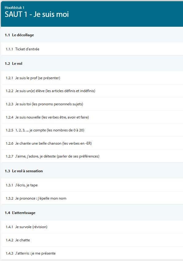 Met de communicatieve opdracht - j’atterris - op het einde van elke Saut kun je de verworven kennis en vaardigheden geïntegreerd in een realistische context toepassen. Ze vormen een mooi moment om de competenties tussentijds te toetsen.