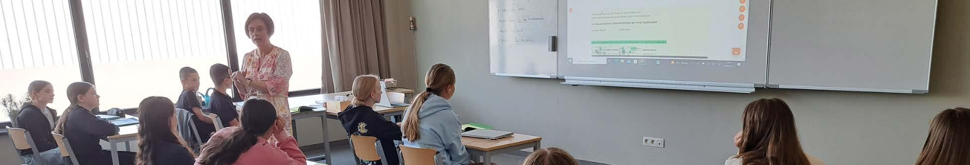“Ik werk met Lernova en daarnaast met het geprinte leerboek in een map. Ik schrijf het schema met de regels op het bord. De leerlingen nemen dat over op papier. Ze vullen hun map ook aan met onze studietips."