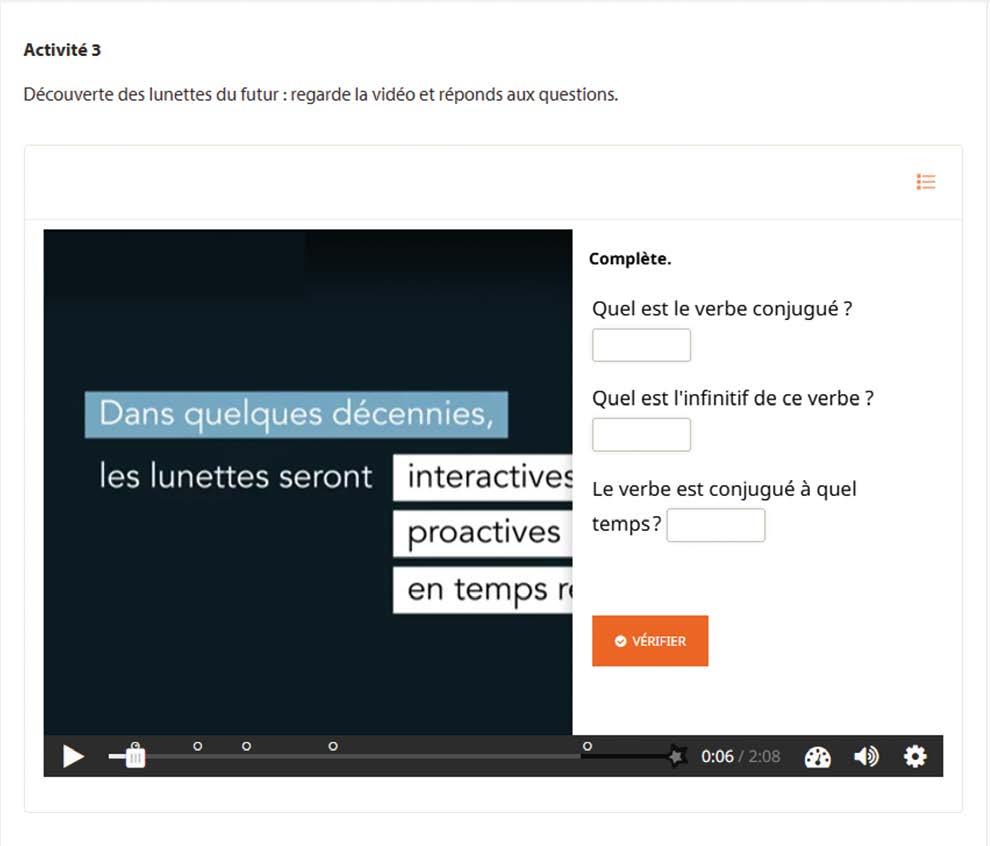 De werkvorm interactieve video helpt leerlingen om gericht te kijken en luistervaardigheid op te bouwen: de video pauzeert automatisch bij de voorziene kijk- en luistervragen en speelt dan weer verder tot de volgende vraag.