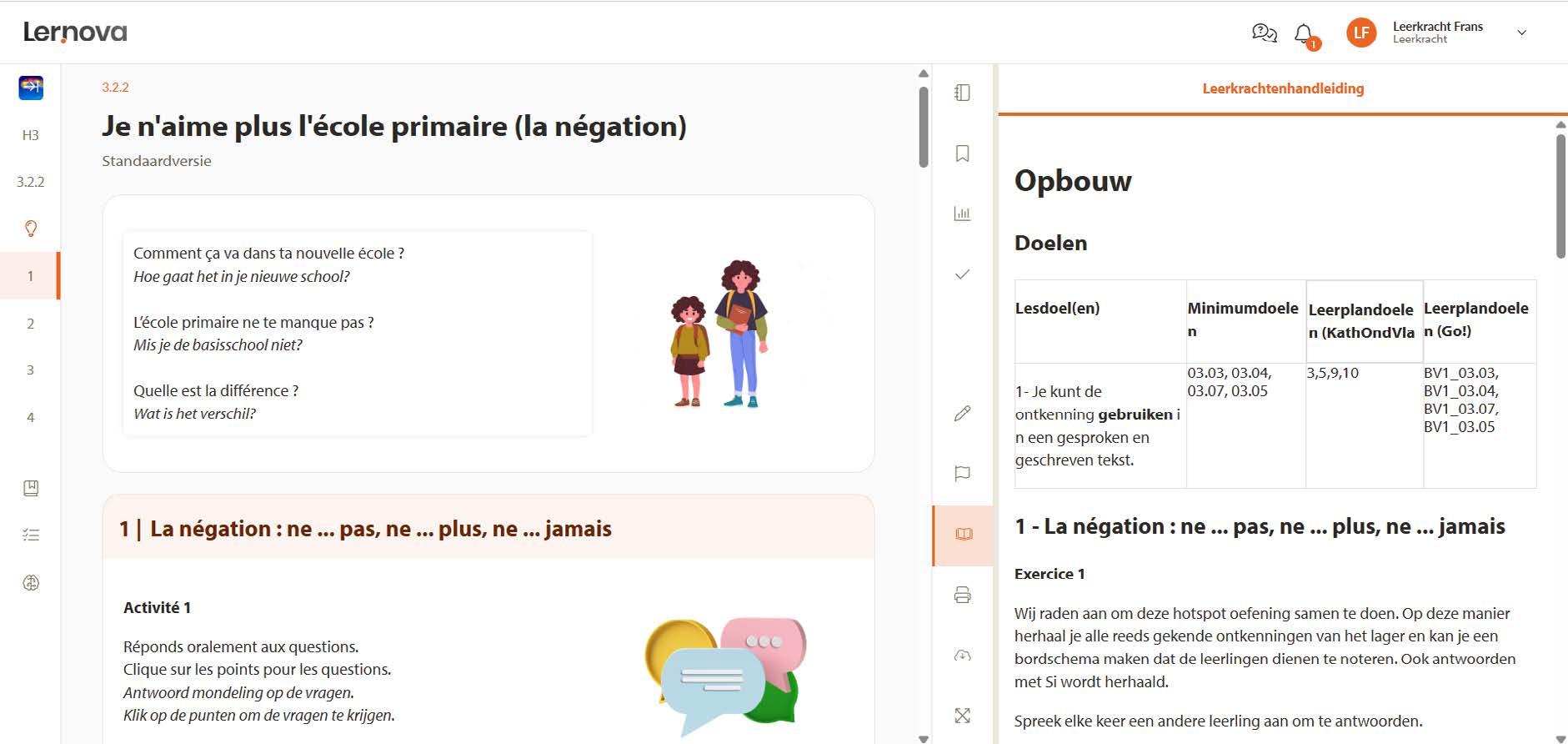 Lernova Frans geeft je de vrijheid om lesinhouden aan te passen en te verrijken. Met slechts enkele muisklikken zet je een leertraject volledig naar je hand, helemaal op maat van jouw leerlingen en de manier waarop je lesgeeft: