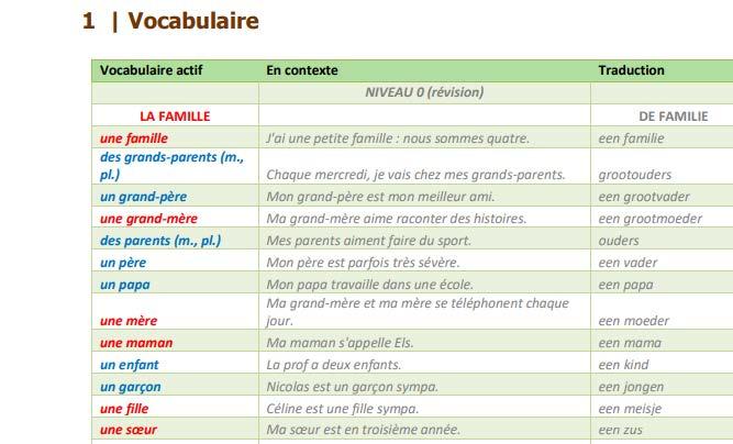 Alle lesdoelen, grammatica en strategieën zijn samengebracht op de ‘theorie’-pagina’s en in één leerboek (printbaar). Dat kun je zien als het vademecum van je Lernova lesmethode Parapente. Alle woordenschatlijsten zijn gebundeld per hoofdstuk en zijn printbaar. Leerlingen kunnen de woordenschat ook oefenen met de studeerkaartjes. Je leerlingen studeren dus met duidelijke leerdoelen, het leerboek in pdf of op papier, de woordenschatlijsten, én hun eigen notities.