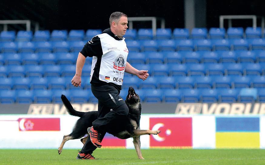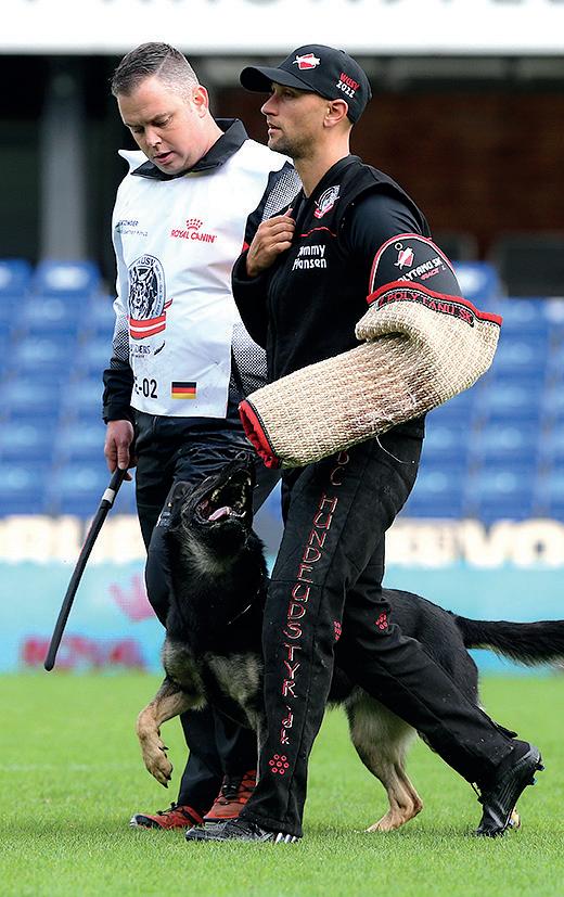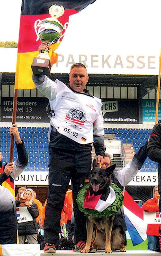Nico Kertzinger: Wir waren insgesamt zehn Tage unterwegs. Am Samstag, dem 24. September, sind wir nach Dänemark angereist und haben uns abends das erste Mal mit dem deutschen Team getroffen. Der Sonntag war komplett für die Veterinärchecks geblockt, und Montag/Dienstag durften sich alle Teams mit den örtlichen Gegebenheiten vertraut machen. Für jeden der insgesamt 122 teilnehmenden Hunde blieben etwa fünf Minuten, die Wettkampffläche zu begehen und die Geräte kennenzulernen. Außerdem wurden die Wettkampftage vorbereitet, also zum Beispiel die Startreihenfolgen ausgelost. Am Mittwoch ging es dann mit dem ersten Wettkampftag los. Ich bin am Mittwoch zunächst in der Fährtenarbeit gestartet, am Freitag im Schutzdienst und am Samstag in der Unterordnung.