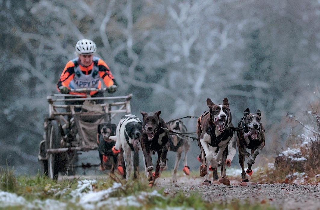 Unser Titelbild „Rasantes Teamwork“ zeigt die Begeisterung für Zughundesport bei Musher und Hunden.