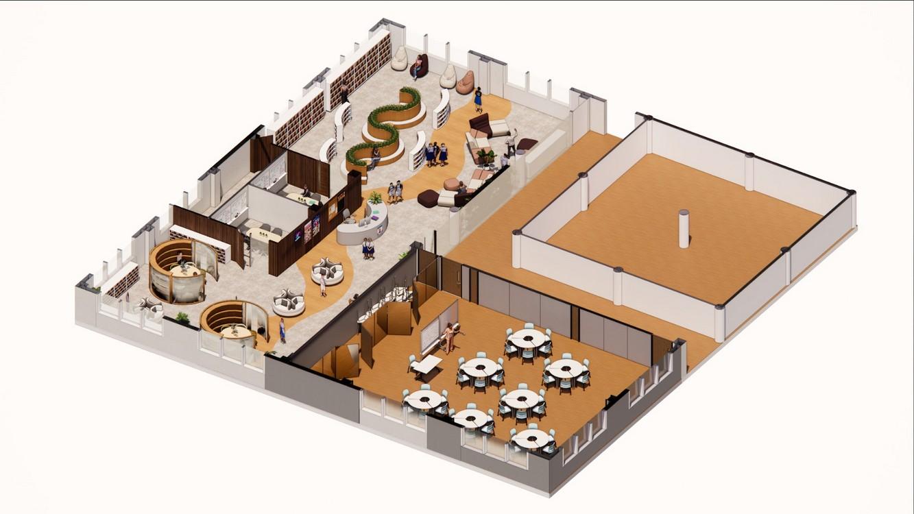 This industry project was to transform a 3 storey building of a secondary school. We had to transform The general office, Art Gallery and the Library.