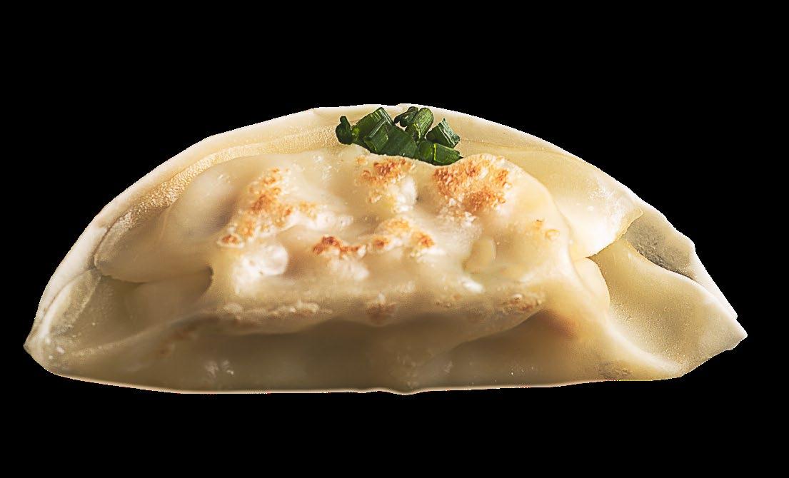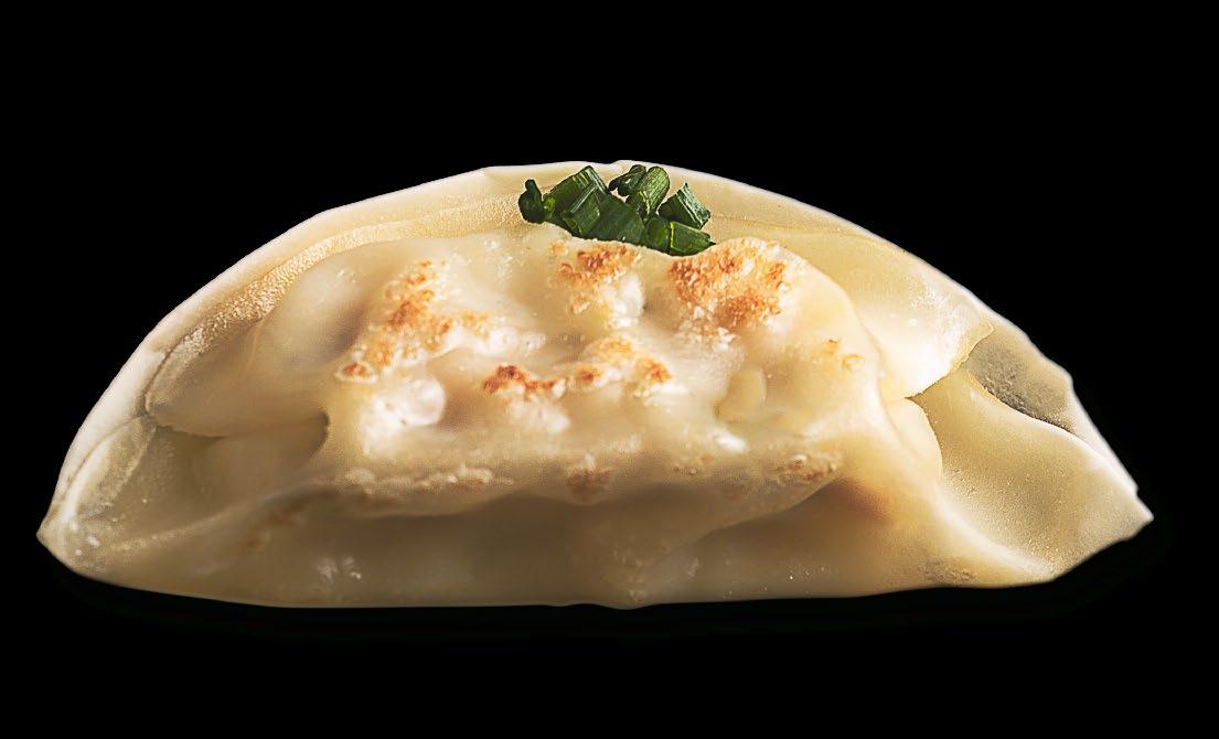 Gyozas rellenas de pollo, ajo tierno, col y jengibre.