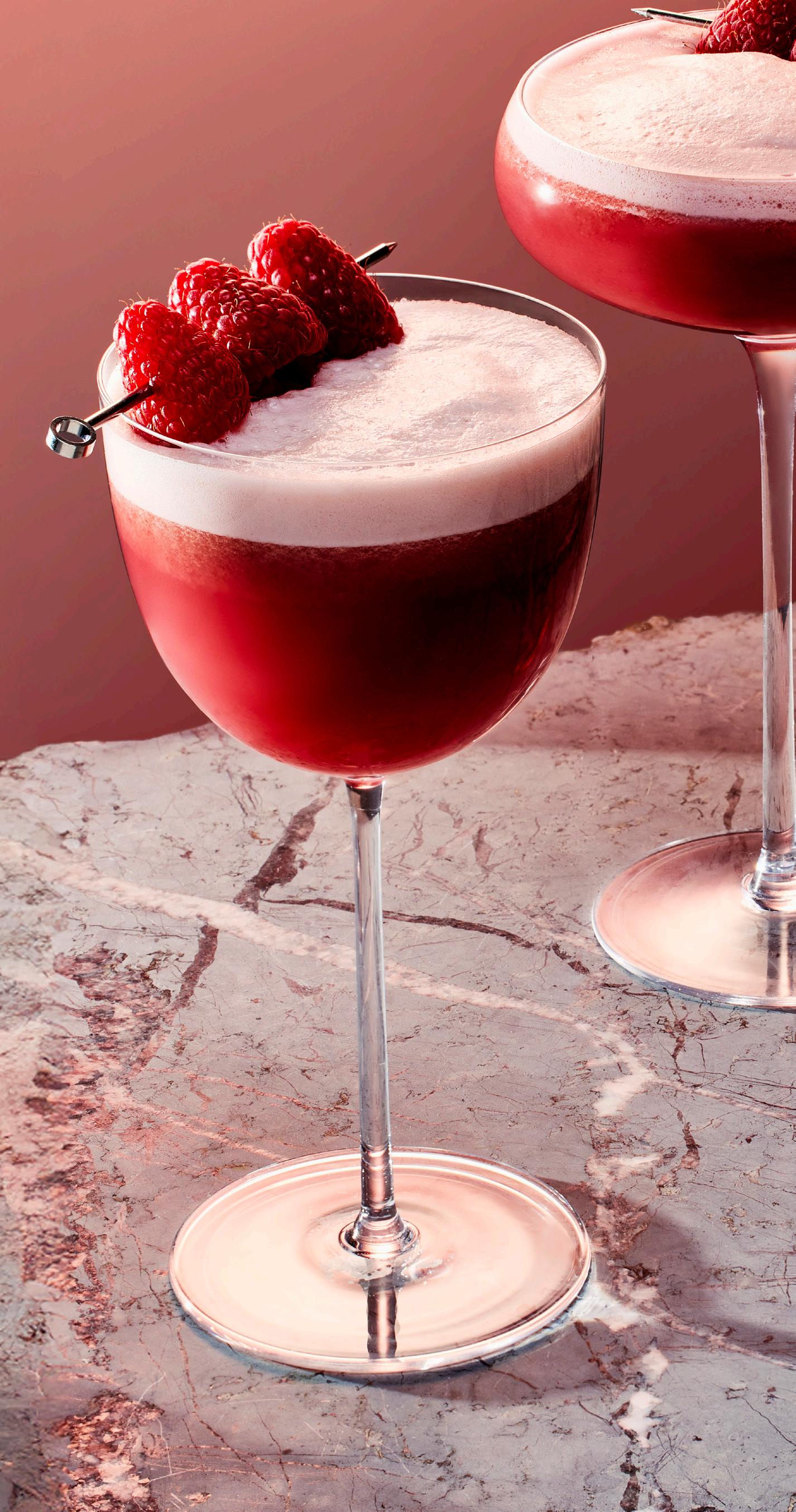 GARNISH: FRESH RASPBERRIES OR MINT SPRIG