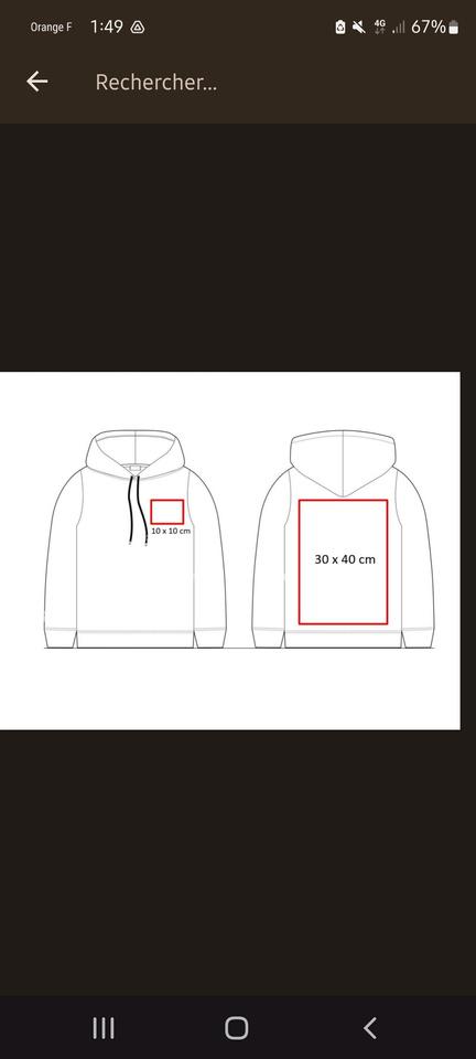 A l'avant (au coeur) il figurera un mot, un logo ou une illustration qui représentera les deux sections. Les dimensions de flocage seront de 10 x 10 cm.