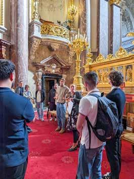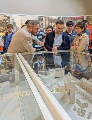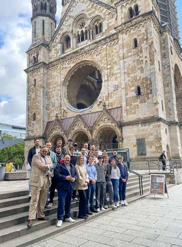der die Stadt nicht nur erklärte, sondern sie spürbar machte. Vom JW Marriott Hotel über den Tiergarten, vorbei an den Botschaften Richtung Charlottenburg bis hin zur Gedächtniskirche, wurde die Vielfalt Berlins zum greifbaren Erlebnis. Stefan Albrecht verband große Geschichte mit kleinen Anekdoten, architektonische Entwicklungen mit Fragen von Erinnerung, Verantwortung und Wandel. Ob KaDeWe und Kurfürstendamm, Siegessäule, Schloss Bellevue, Reichstag oder Potsdamer Platz – jedes Kapitel der Berliner Stadtentwicklung wurde eingebettet in seine politische, kulturelle und soziale Bedeutung. Besonders eindrucksvoll: der Besuch des HolocaustMahnmals, die Auseinandersetzung mit der Wilhelmstraße, die symbolische Spannung am Bebelplatz, wo Oper, Universität, Kathedrale und Bank als Sinnbilder unterschiedlicher Freiheitsbegriffe aufeinandertreffen.