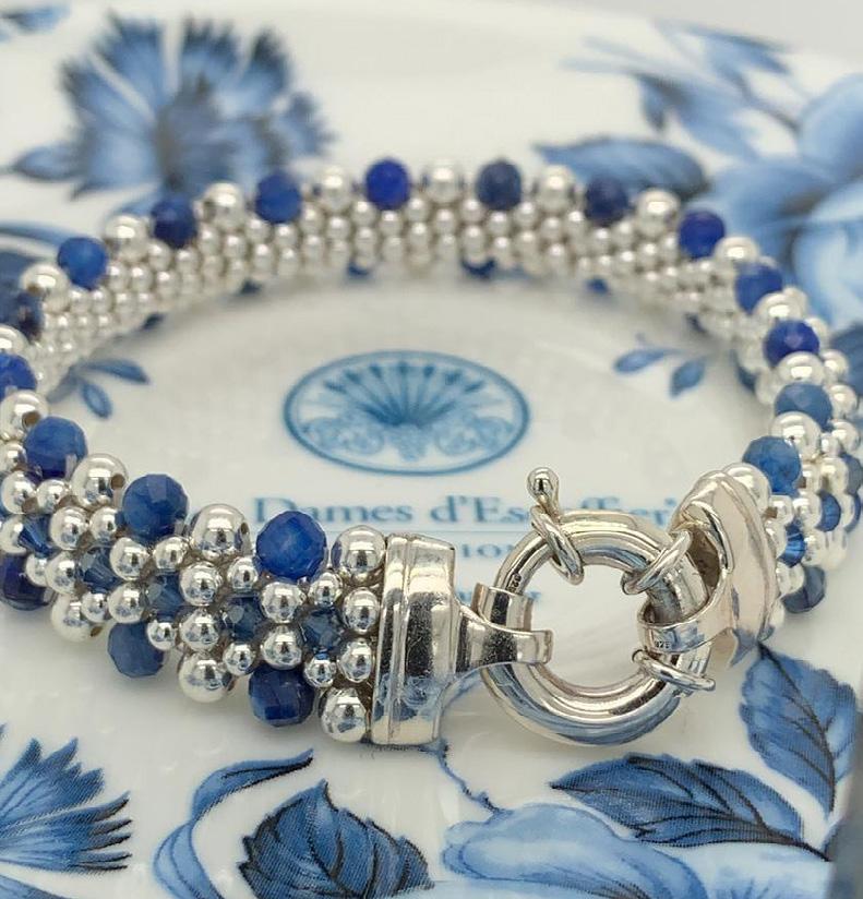 Handcrafted by Dame Susanne Greelish of Dovera Designs (Boston, MA), this LDEI reversible bracelet sparkles with gemstones and crystals in shades of LDEI blue. Each sterling silver link is a symbol of strength, friendship, and the enduring beauty of women uplifting one another. Available in the LDEI Member Center—a keepsake designed to shine for generations.
