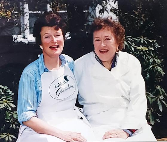Eda Saccone (left photo, center) with several Boston Les Dames des Amis d’Escoffier. Photo courtesy of Lucille Giovino. Anne Willan and Julia Child at The Greenbrier Hotel in in West Virginia during the late 1980s. The hotel’s Escoffierstyle kitchen is structured around the principles of the Escoffier kitchen brigade system, but adapted to modern needs.