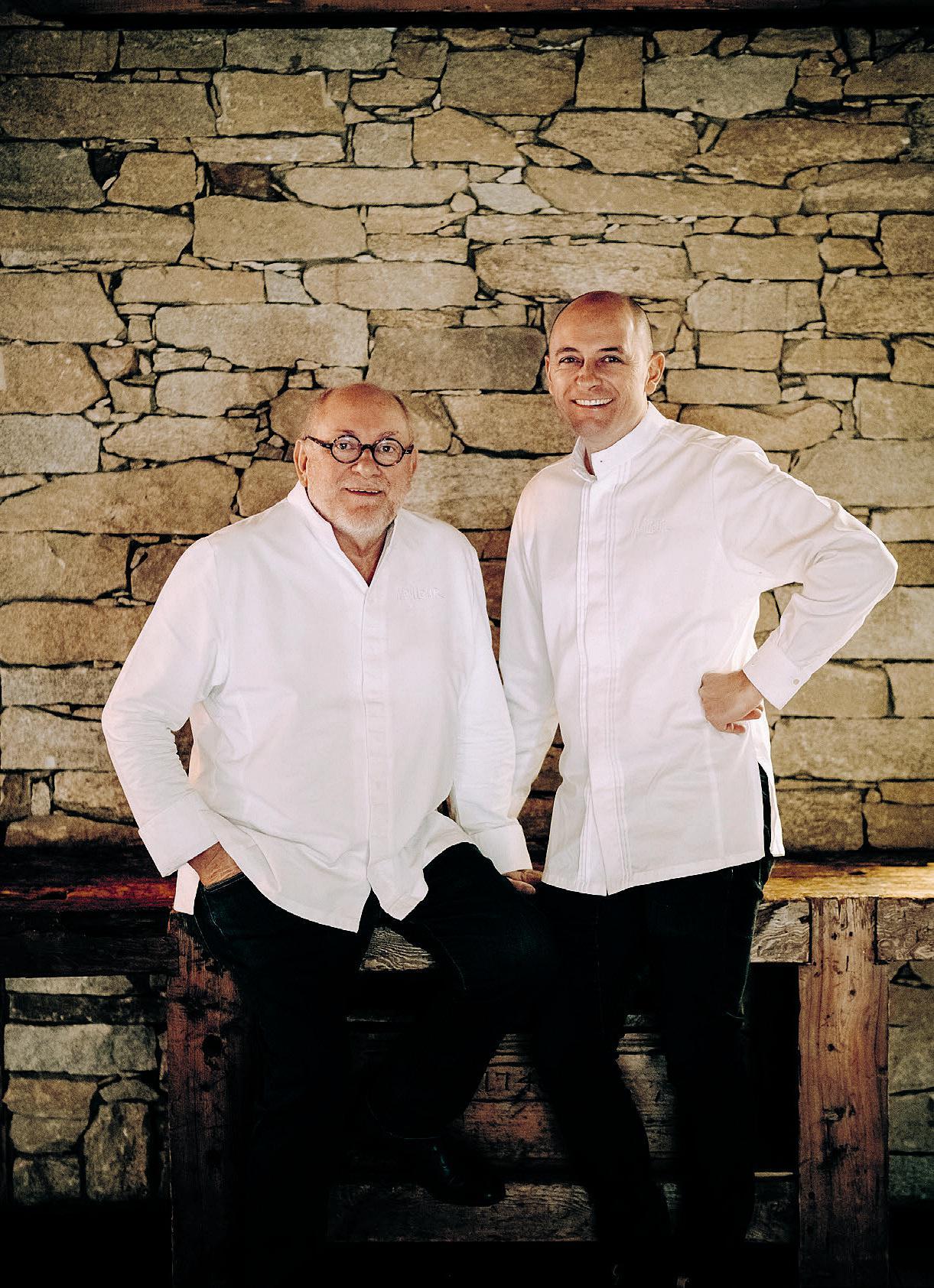 THIS IS THE STORY OF AN UNASSUMING RURAL EATERY that became an internationally revered haven of gastronomy. It’s also the story of two self-taught yet virtuoso chefs, René and Maxime Meilleur–a father and son who, over four decades, have formed an inimitable culinary partnership. The story begins in 1976 in the hamlet of Saint-Marcel, at the heart of France’s Savoie region, near the largest ski area in the world, Les Trois Vallées. At an altitude of 4,927 feet/1,502 meters, René Meilleur and his wife Marie-Louise opened a restaurant–“the chalet of their dreams”–where they served simple but generous fondues and raclette dishes. They called it La Bouitte, or ‘little house’ in the local Savoyard dialect, and a regular stream of happy patrons came and went. But one evening in 1981, the couple had a memorable dinner at Paul Bocuse, the eponymous, iconic gourmet restaurant in Collonges-au-Mont-d’Or, near Lyon, that would change their lives. It was a “shock to the taste buds” which sparked an idea. “After that meal, we realized we had to move towards more elaborate and creative dishes, while focusing closely on local produce–lamb from our local farmer, fish from the lake, herbs from the mountains, and so on,” says René. “Little by little, we took out the raclette machines, began serving more elegant dishes and took a brand new approach to our restaurant.”