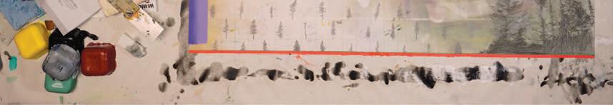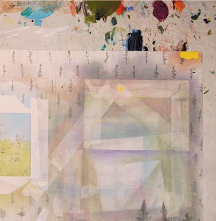 toujours aussi aiguisé et pénétrant. Non. J’ai l’impression que ce qui s’est transformé, c’est ton rapport au temps : je le lis partout dans le sous-texte de notre conversation épistolaire. Tu me parles des saisons et de la température qui influe sur ton corps, ton esprit. De tes recherches qui prennent la forme d’observations résilientes, puisque chaque instant de ce « spectacle inouï de la vie et de la mort contenu dans la nature » t’est aussitôt repris par ce temps qui file inlassablement en ne te laissant que des impressions furtives que ta mémoire peine à colliger. Tu évoques souvent l’idée de processus, les notions de lenteur, de recommencement, de cycle, de patience, d’évolution et aussi celle d’archive. L’apport récent de la photographie en amont de ta pratique picturale s’explique donc ; tes vagabondages ont leur chaperon, soucieux de documenter ces évanescences. « C’est un nouveau paramètre, un nouvel outil de recherche, une approche dématérialisée, du moins numérique. J’entrepose des fichiers pour le moment. » Une banque d’images, donc. Parce que la peinture, du moins celle que tu exerces, implique précisément l’accumulation, l’échantillonnage et la lente sédimentation du dicible et de l’indicible. Comme si les images – que tu aimes profondément contradictoires, hybrides et composites – venaient s’amonceler sur la planéité de tes toiles pour former d’étranges hétérotopies, des « espaces autres » en dialogue avec l’espace et le paysage, mais extérieurs à ce dernier. C’est d’ailleurs un peu ce que je vois dans ce nouveau corpus, Apprivoiser le territoire (depuis 2019), issu de ton projet de recherche avec Parcs Canada et le Conseil des arts et des lettres du Québec. Une espèce de mise à distance du territoire pour mieux l’apprivoiser et comprendre ce qui te lie à lui. « J’aborde l’idée de l’archipel pour sa composition, la vue aérienne d’iles, mais aussi pour la dimension critique de la montée des eaux, de la formation et du façonnage de ce territoire d’abord naturel, sublime, puis transformé par l’humain dans ses usages. » L’agglomération de matière, la coulure et la tache comme des odes au paysage et à la marque indélébile que l’humain y laisse impunément. Et peut-être, aussi, comme la tentative 1000 fois répétée de représenter l’inreprésentable : le réel. De la surface plane à la main, à l’œil, au visible et à ce qui en constitue l’essence même, ce sont autant de transferts où rien ne se perd, rien ne se crée. Autant de détours pour n’arriver nulle part, mais être partout à la fois. « Je ne suis ni écrivain ni philosophe, finis-tu par dire. Simplement un piocheux de l’art, un artiste qui, à l’image du fermier, travaille sa surface et sa matière sans relâche, laissant des parcelles en jachère, planifiant ses cultures. »