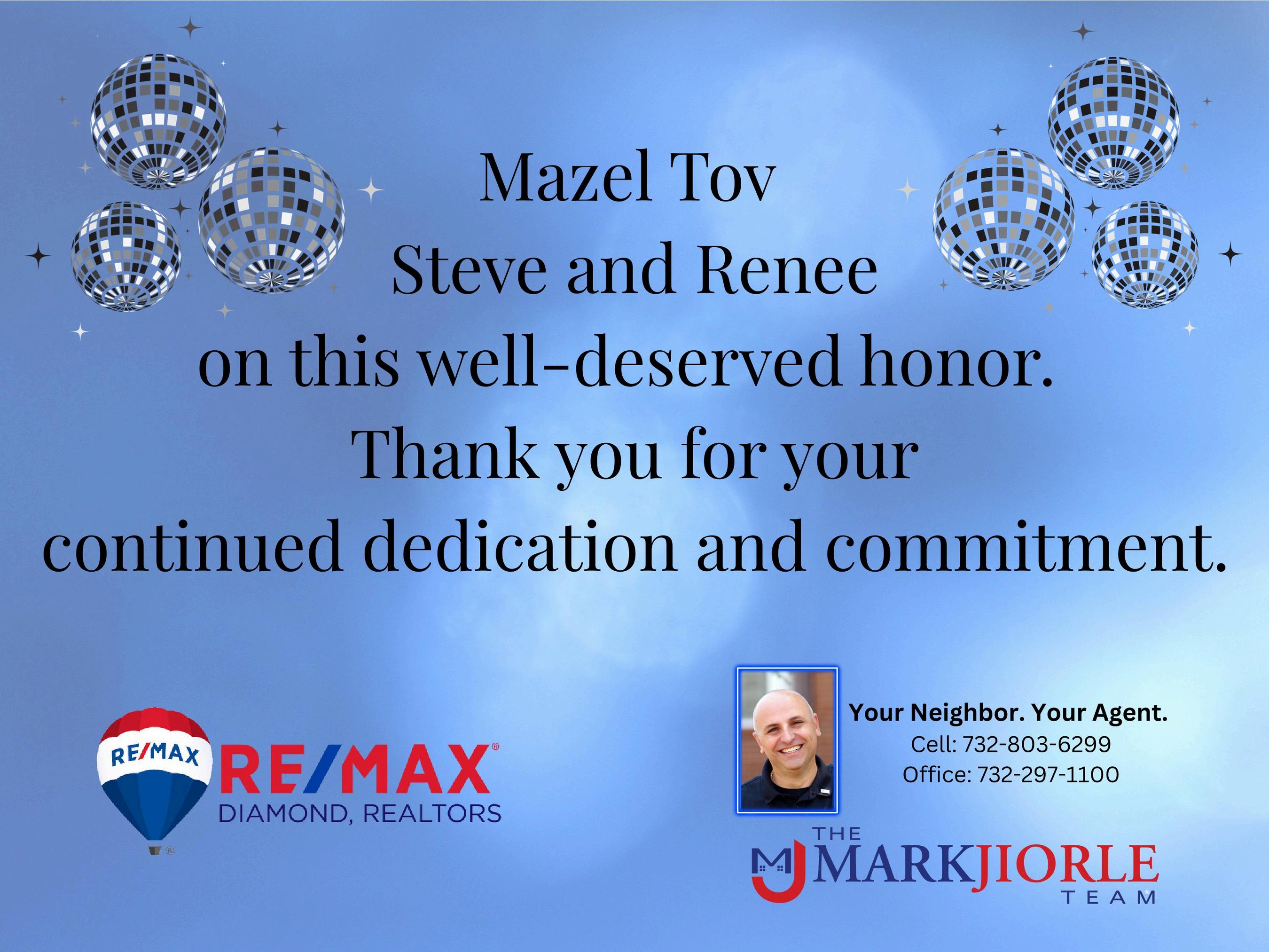 Renee and Steve - Mazel Tov. The honor is well deserved.