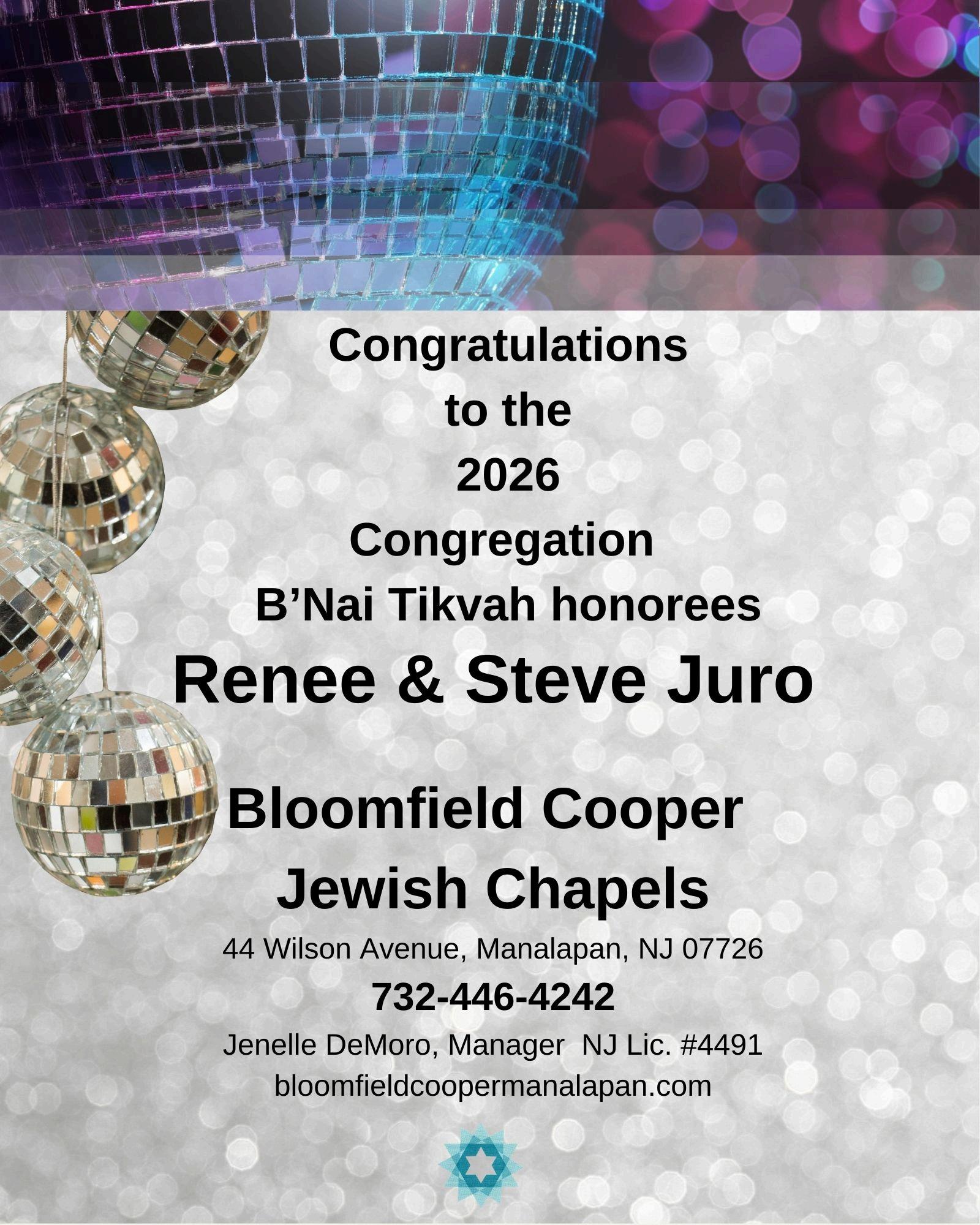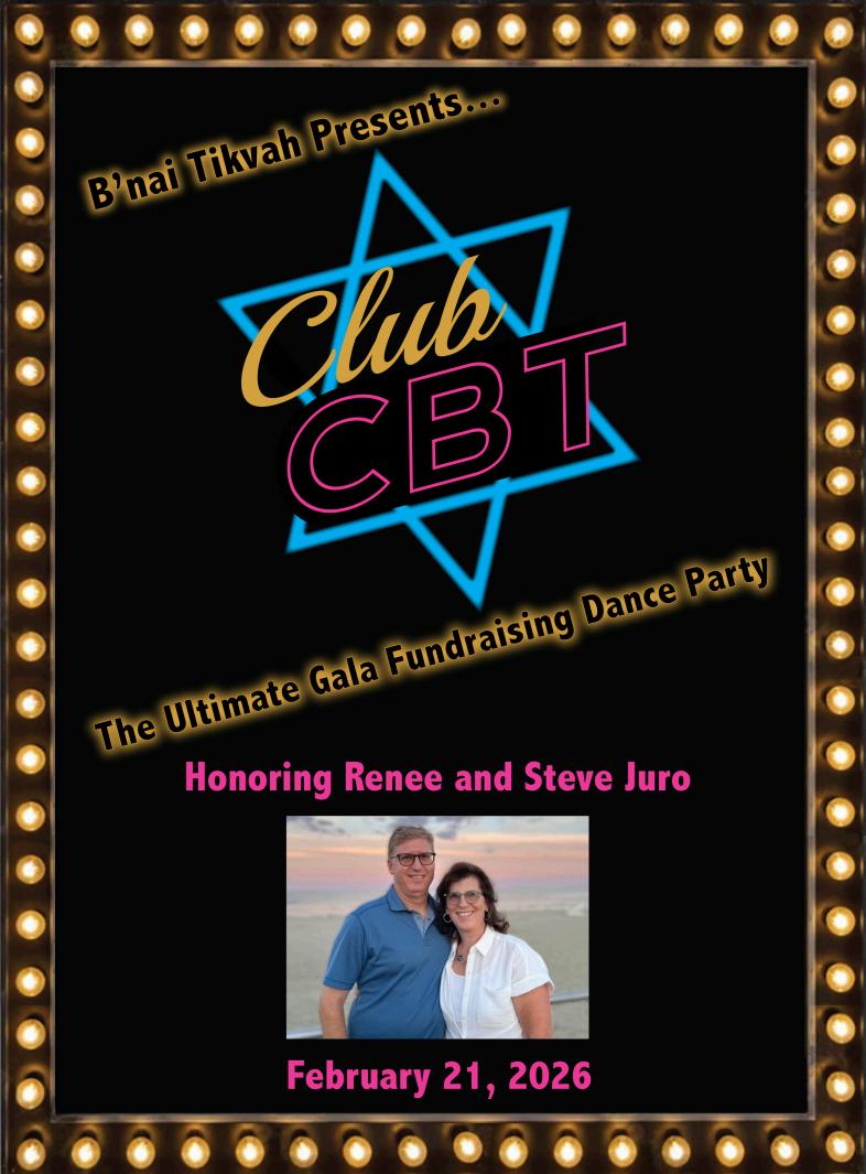 Celebrating renee & steve juro, whose unwavering dedication to our synagogue is a constant source of strength and inspiration.
