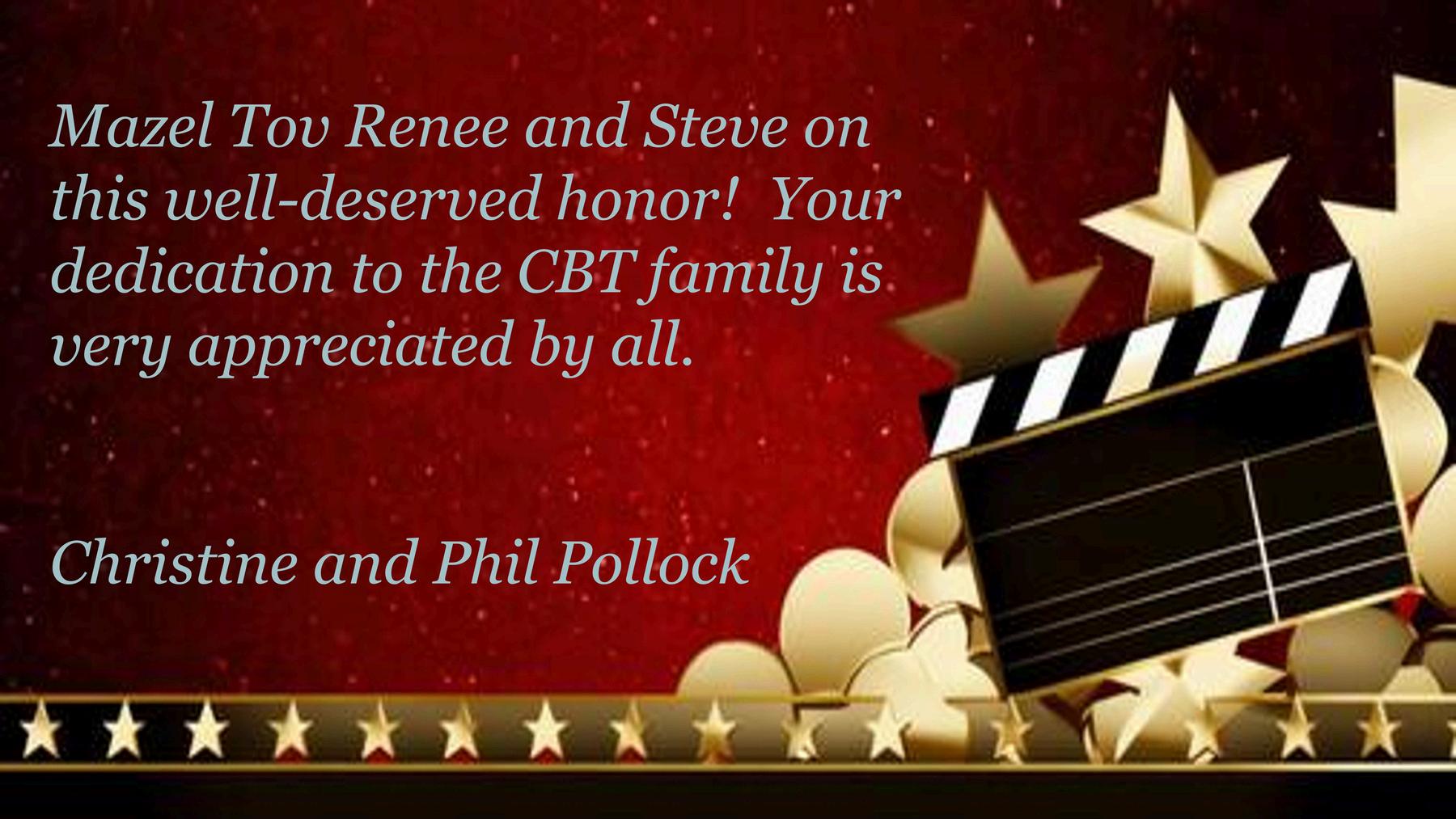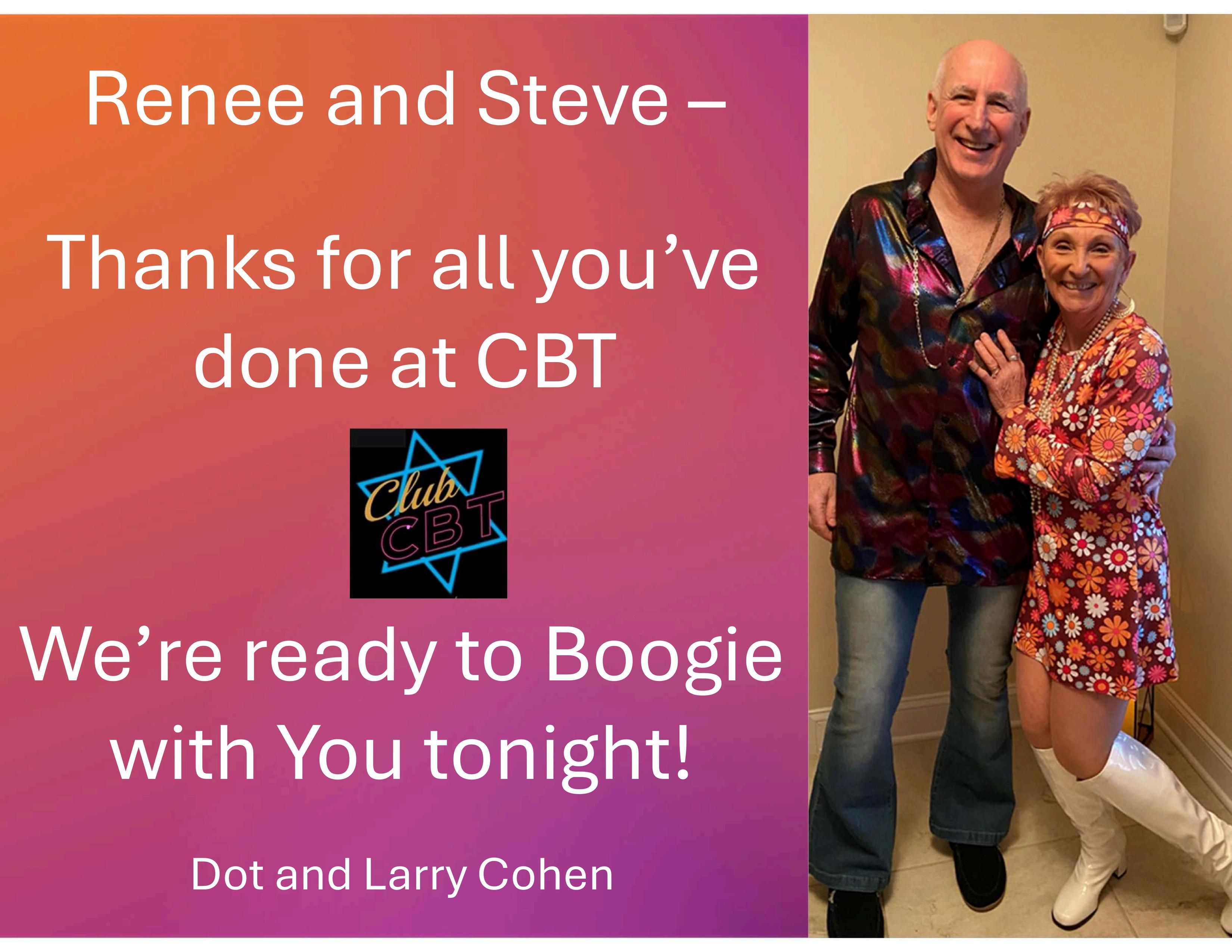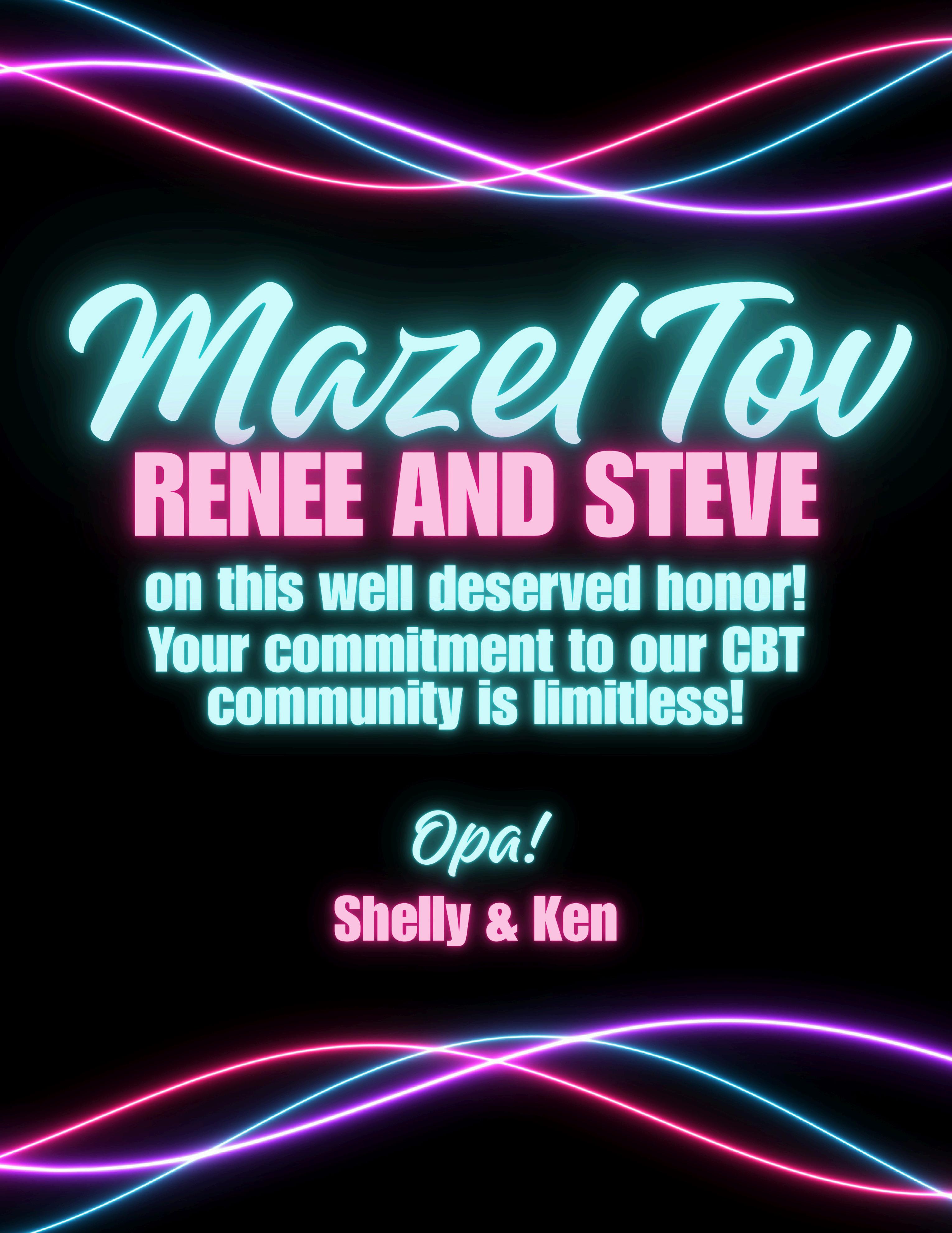 Mazel Tov to Renee and Steve for their efforts, commitment, and enthusiasm to CBT!