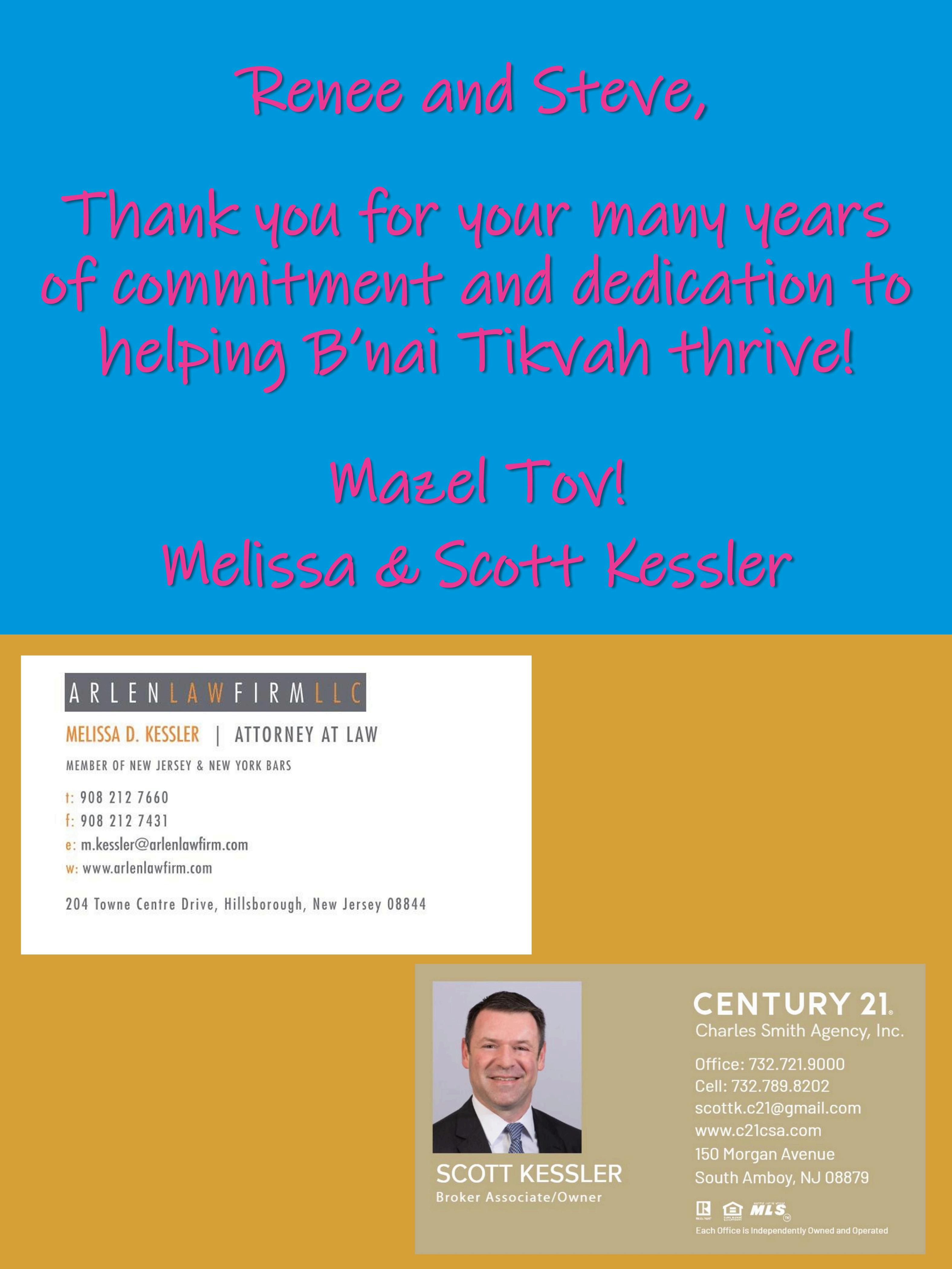 Renee and Steve, we’re so thankful for the time and care you’ve given to B’nai Tikvah. Your commitment has meant a great deal to us as friends and to the community you’ve supported so generously.