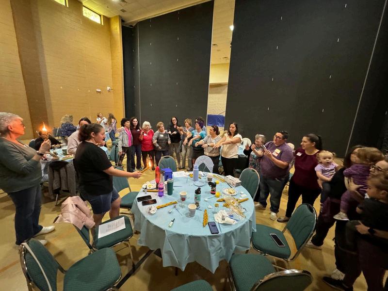 We began this year with our first program on October 6, Hummus & Havdalah. Kudos to Jessica Marcus and Lori Sookerman for planning an amazing program. Over 30 women (and a few little tykes) gathered in the gym to braid Havdalah candles, etch spice jars, and of course, partake in the tasty brunch. Apparently braiding hair is substantially easier than braiding candles (I wouldn’t know since my daughter has always had short hair so I wouldn’t have to!)