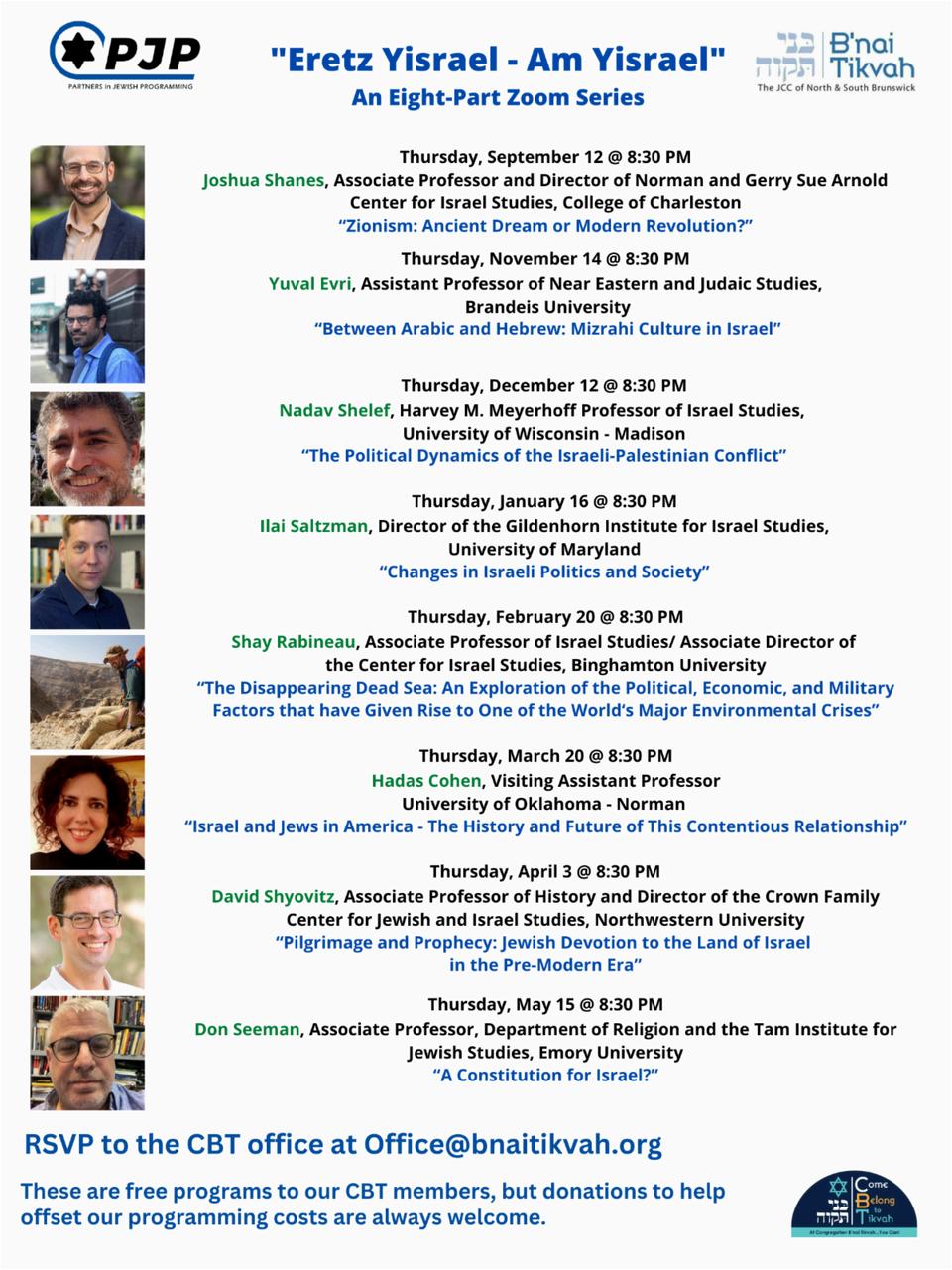 The other focus areas are Young Families, Adult Education and Social Activities. As another example, Membership has introduced a Buddy Program. The intent is matching an experienced congregant with a more recent congregant to keep them aware of opportunities that CBT provides. For further details, click here. [Or go to our website, click on the search icon (near the top right of the Home Screen), type Buddy Program, hit Enter (or Return) and click on the Read More link.]