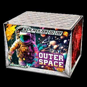 I'm gonna send you to Outer Space! Diepgouden effecten met bloedrode pearls & knalblauwe sterren in de finale! 36 schots Pyromould.