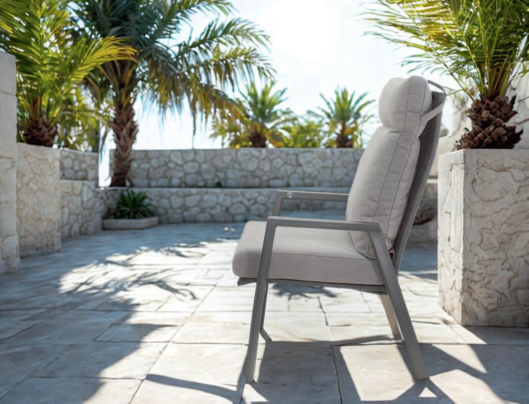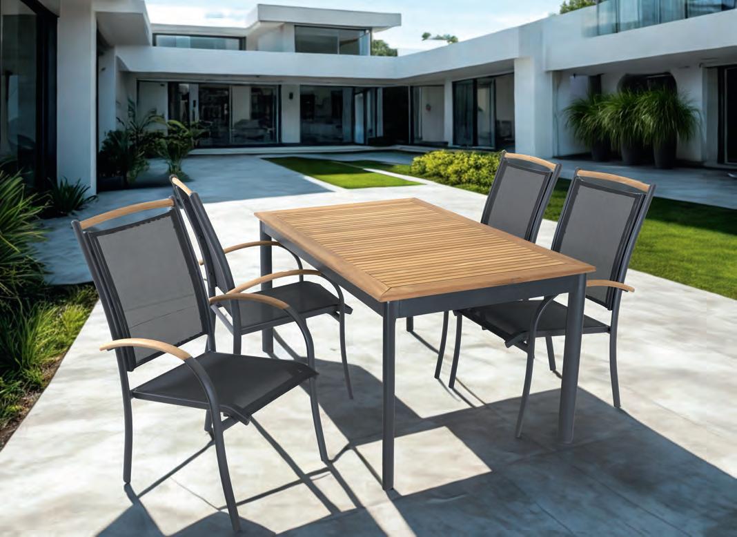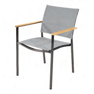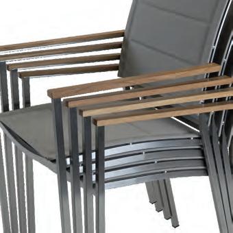 TEXTILENE Textilene ist ein gewebtes Kunststoffmaterial, das häufig für Rückenlehnen und Sitzflächen von Stühlen verwendet wird. Es handelt sich um einen leichten Stoff, der sich leicht an die Körperform der darauf sitzenden oder lehnenden Person anpasst. Dadurch eignet sich Textilene hervorragend für verschiedene Anwendungen, insbesondere im Gartenmöbelbereich. Textilene ist nicht nur stark und langlebig, sondern auch pflegeleicht und sehr widerstandsfähig gegenüber unterschiedlichen Witterungsbedingungen. Es ist atmungsaktiv, farbbeständig und wetterfest. In unseren Gartenstühlen wird Textilene häufig in Kombination mit Aluminiumrahmen verwendet – für eine perfekte Balance zwischen Komfort und Langlebigkeit.