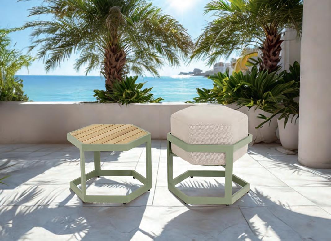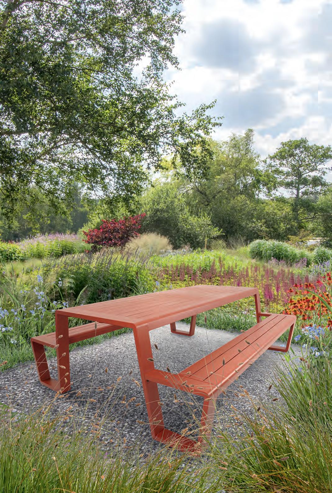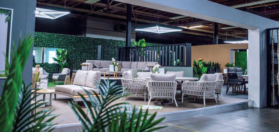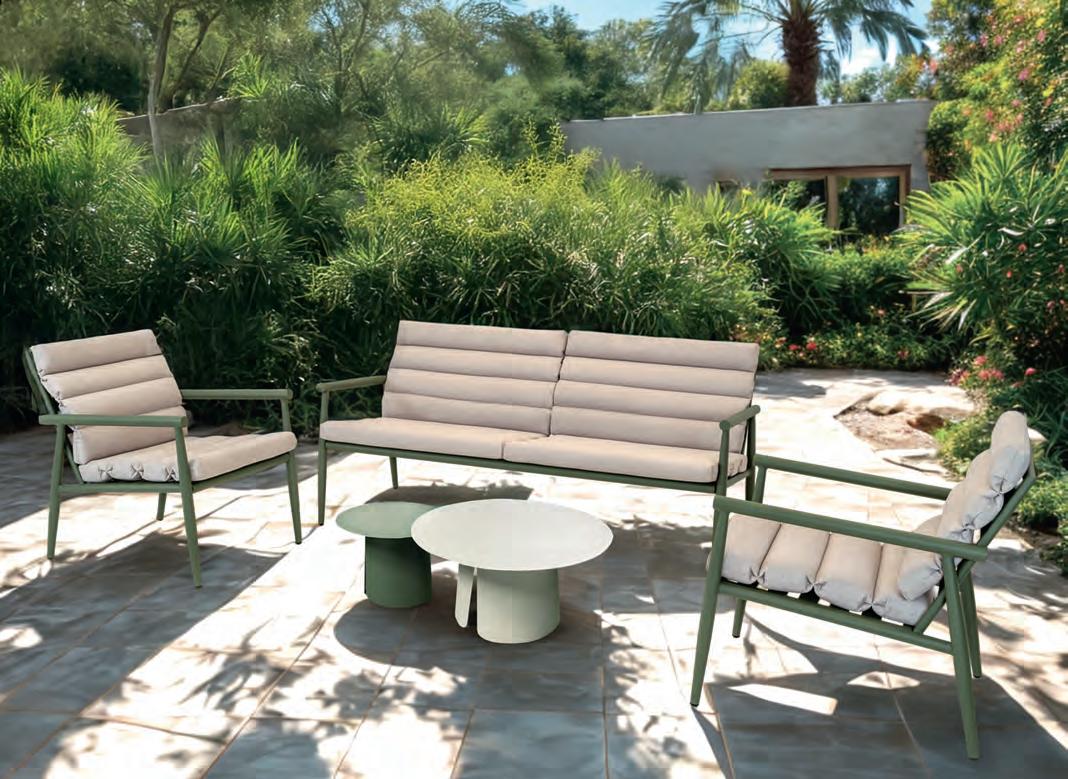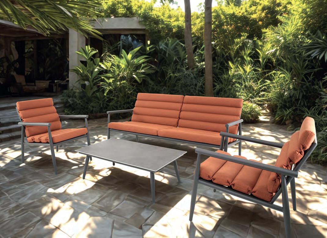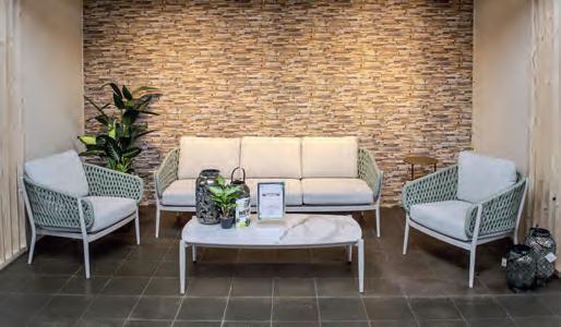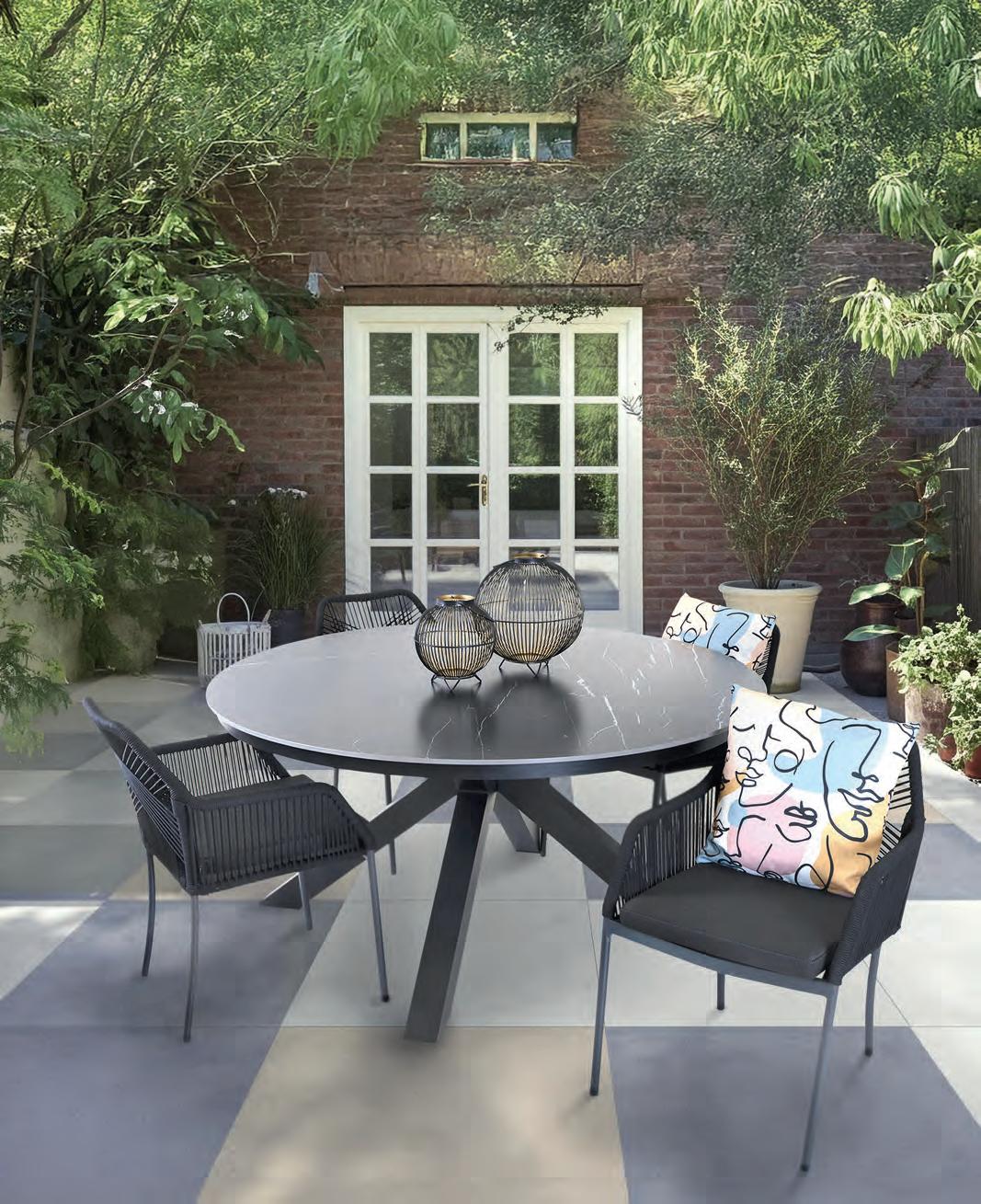 Echt voor nu en hier: vormen, kleuren en materialen die inspireren. De tuinmeubelen in deze belevingswereld maken een statement.