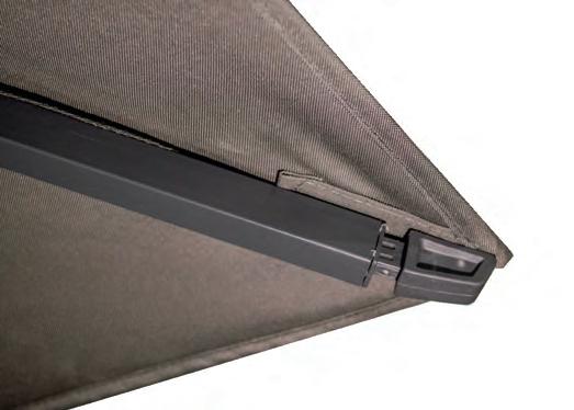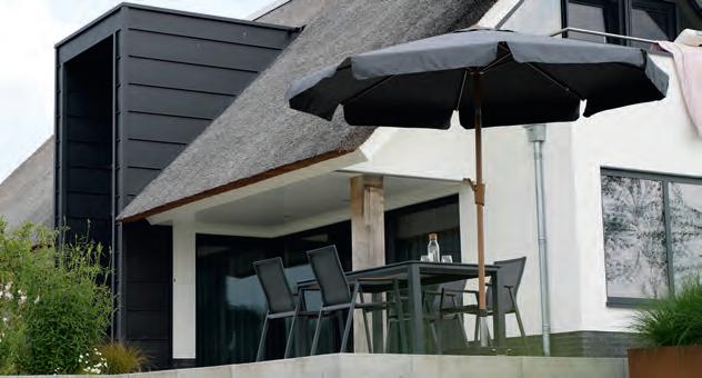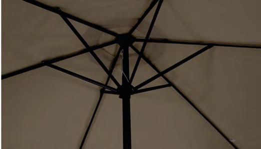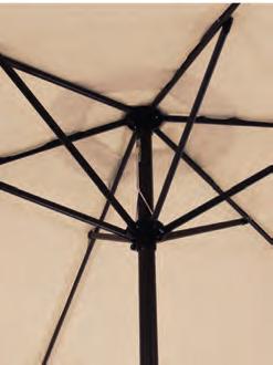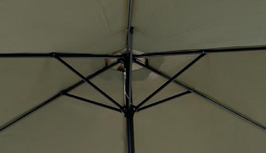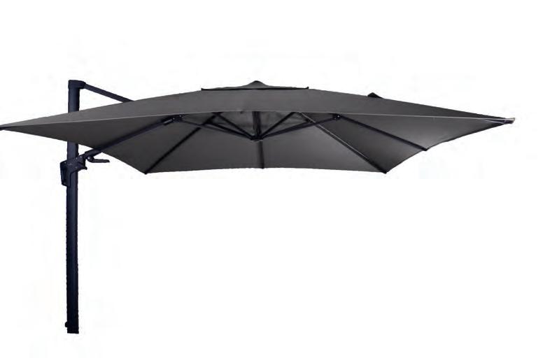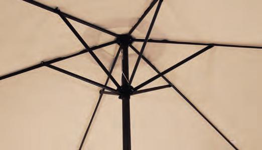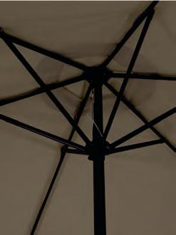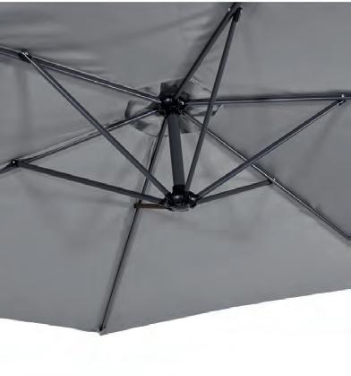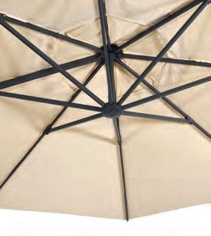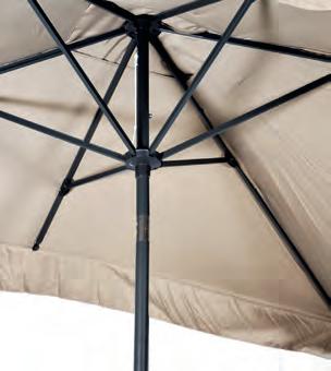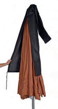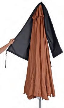 PARASOLS Om uw parasol in topconditie te houden, is het belangrijk om regelmatig stof en vuil van het doek te verwijderen. Dit zorgt ervoor dat het doek mooi blijft en de parasol langer meegaat. We raden aan om de parasol alleen dicht te doen wanneer het doek droog is. Een beschermhoes is essentieel. Het voorkomt dat er kleurverschil ontstaat tussen de delen die aan de zon worden blootgesteld en de delen die in de schaduw blijven. Dit helpt het doek in optimale staat te houden.