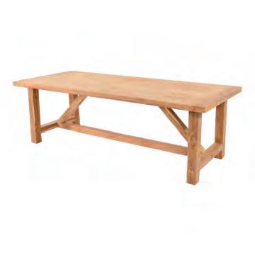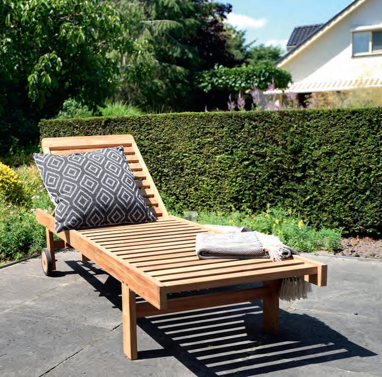 GERECYCLED TEAK Gerecycled teakmeubilair heeft een authentieke uitstraling die de tand des tijds weerspiegelt. Elk meubelstuk is uniek, met zijn eigen karakteristieke kenmerken. Bovendien draagt het bij aan duurzaamheid, aangezien het hout een tweede leven krijgt. Omdat het om gerecycled materiaal gaat, kunnen er krassen, deuken, kieren, knoestgaten, verkleuringen, spijkergaten of andere beschadigingen aanwezig zijn. Deze imperfecties hebben echter geen invloed op de levensduur van het product. Onderhoud en reiniging: behandel gerecycled teak op dezelfde manier als nieuw teakhout. Voor dieptereiniging gebruikt u de Teak, Bamboe en Hardhout reiniger (Art. 74970). Voor kleurbehoud is de protector (Art. 74971) geschikt. Voor extra bescherming gebruikt u de transparante shield (Art. 74973)