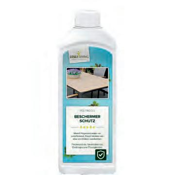 Onderhoud en reiniging: gebruik de speciale Polywood reiniger (Art. 74974) voor het verwijderen van vuil. Spuit op, reinig met een zachte doek en spoel na. Voor extra bescherming gebruikt u de Polywood beschermer (Art. 74975).