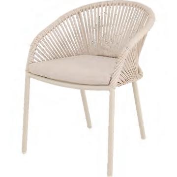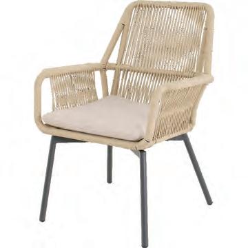 80x84x66,5cm | Aluminium frame matt beige | 240gr∕m² olefin cushion | 30x16mm flat rope color beige | Max. carryweight: 140kg