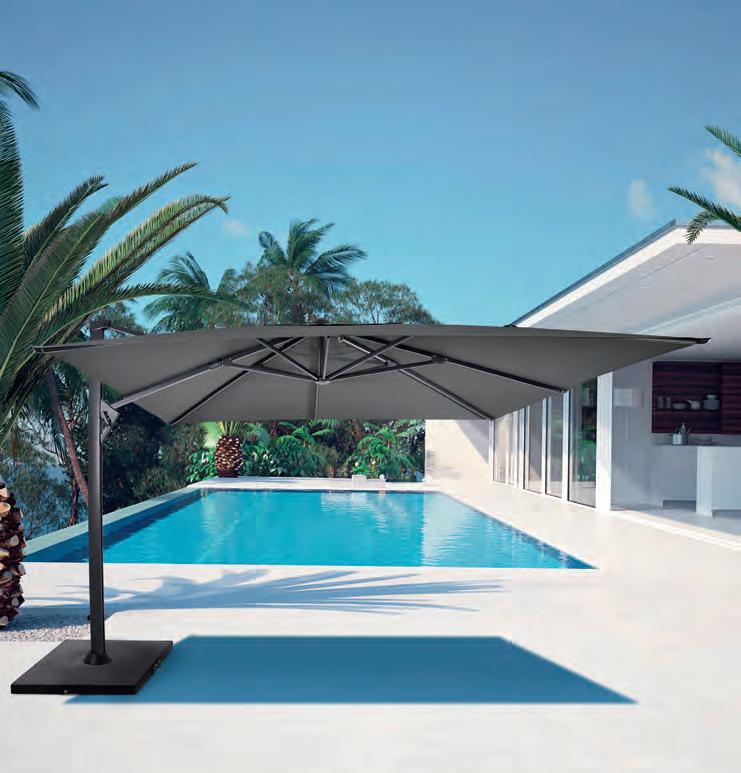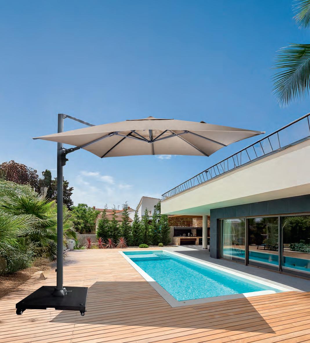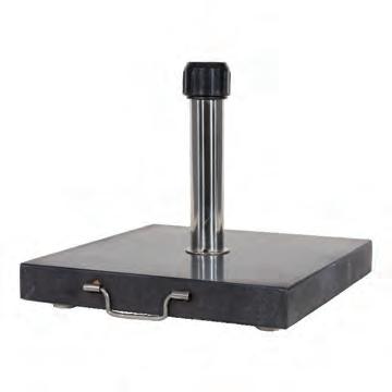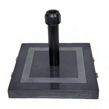 GRANIT-SONNENSCHIRMSTÄNDER Granit ist ein äußerst starkes und langlebiges Naturmaterial. Aufgrund seines Gewichts und seiner Härte eignet es sich hervorragend als Standfuß für Sonnenschirme. Granit ist wetterfest, kratzbeständig und verleiht eine luxuriöse, zeitlose Optik.