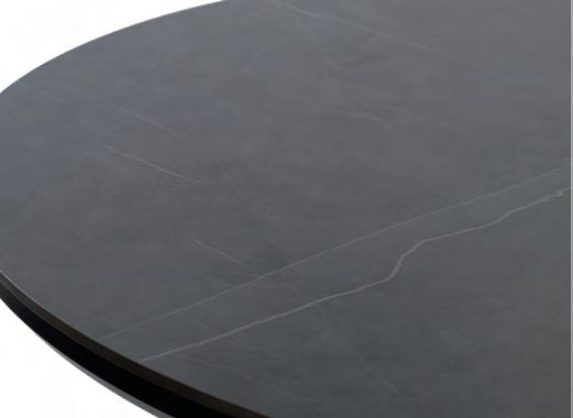 Gesinterter Stein ist – ähnlich wie Keramik – ein gebranntes, nicht poröses Material, das häufig für Tischplatten verwendet wird. Es besteht aus natürlichen Rohstoffen, die unter hohem Druck und hoher Temperatur verpresst werden. Im Vergleich zu Keramik wird gesinterter Stein jedoch unter noch höherem Druck verdichtet. Das Ergebnis ist eine extrem harte, hitzebeständige, kratzfeste und fleckenresistente Oberfläche – ideal für den Einsatz im Außenbereich.