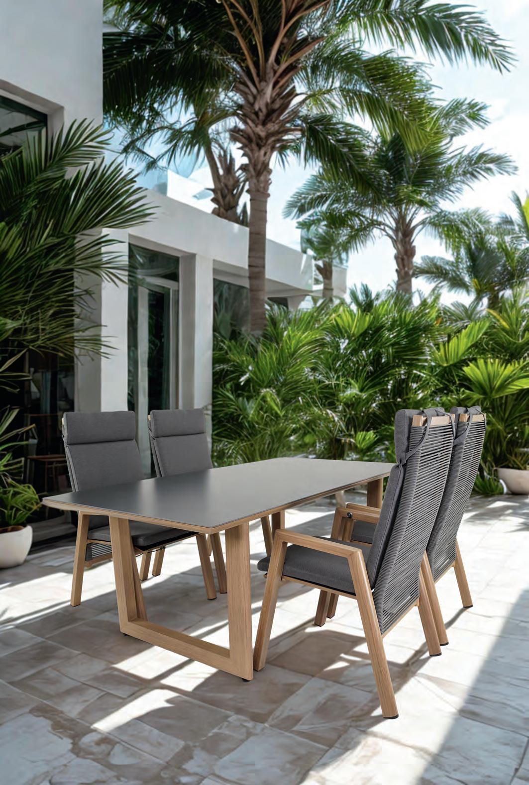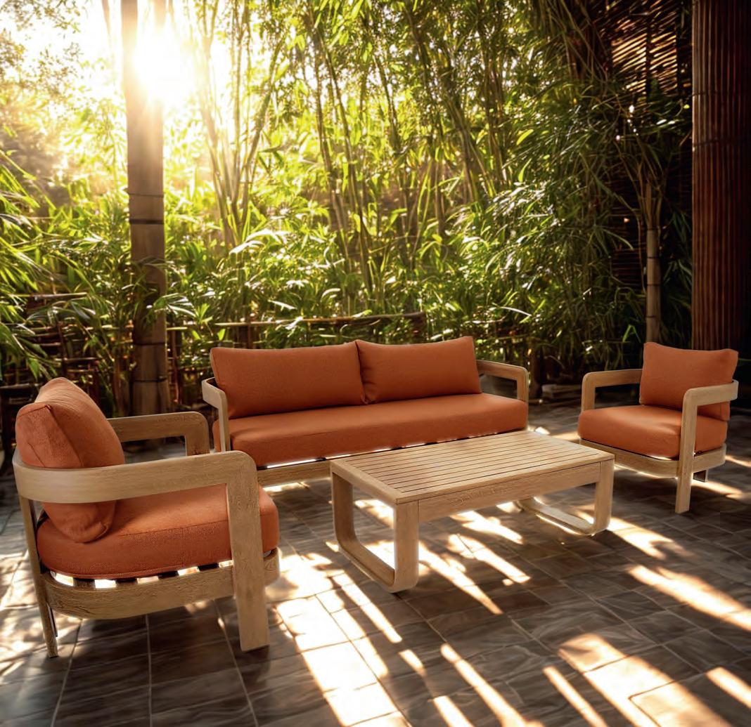 BAMBUS Bambus ist eine umweltfreundliche Alternative zu Hartholz. Er ist robust, stilvoll und verleiht Gartenmöbeln eine warme Ausstrahlung. Dank moderner Behandlungsverfahren ist Bambus gut gegen Feuchtigkeit, UV-Strahlung und Temperaturschwankungen beständig – vorausgesetzt, er wird richtig gepflegt.