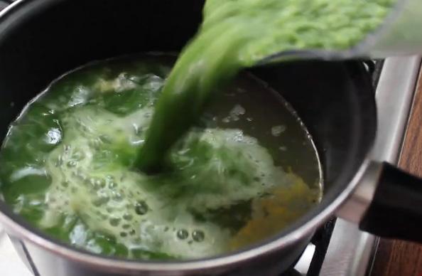 5.Terminado de hervir, temperar la crema, hasta lograr la misma temperatura de la sopa.
