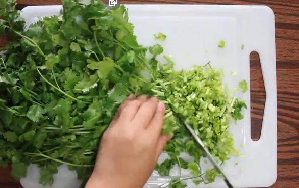 2.Batir los huevos y agregar las rebanadas de champiñones, cilantro, sal y pimienta.
