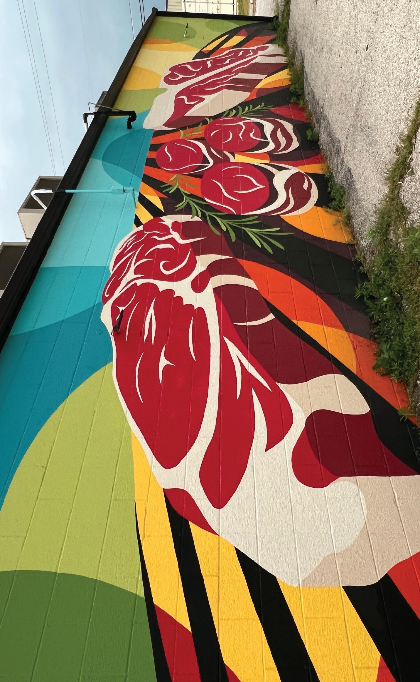 The mural serves as a reminder to live life to the fullest. The Fiesta Hibiscus flowers represent respect, love, friendship, family, and feminine energy.