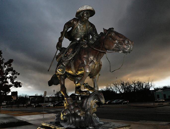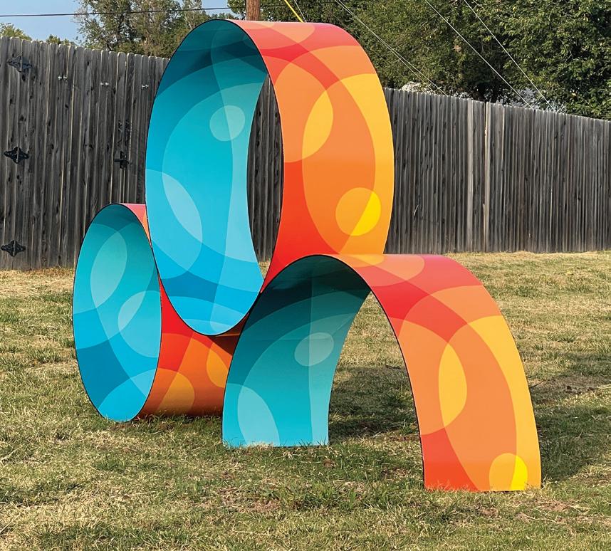 These displays represent the work of more than two dozen artists. Some of the most prolific locally are Kelly and Ty Tompkins and Tox Murillo. We also make special note of the significant contributions by H Holden, who died in December 2023. He leaves an impressive legacy with his bronze sculptures in Enid and throughout Oklahoma.