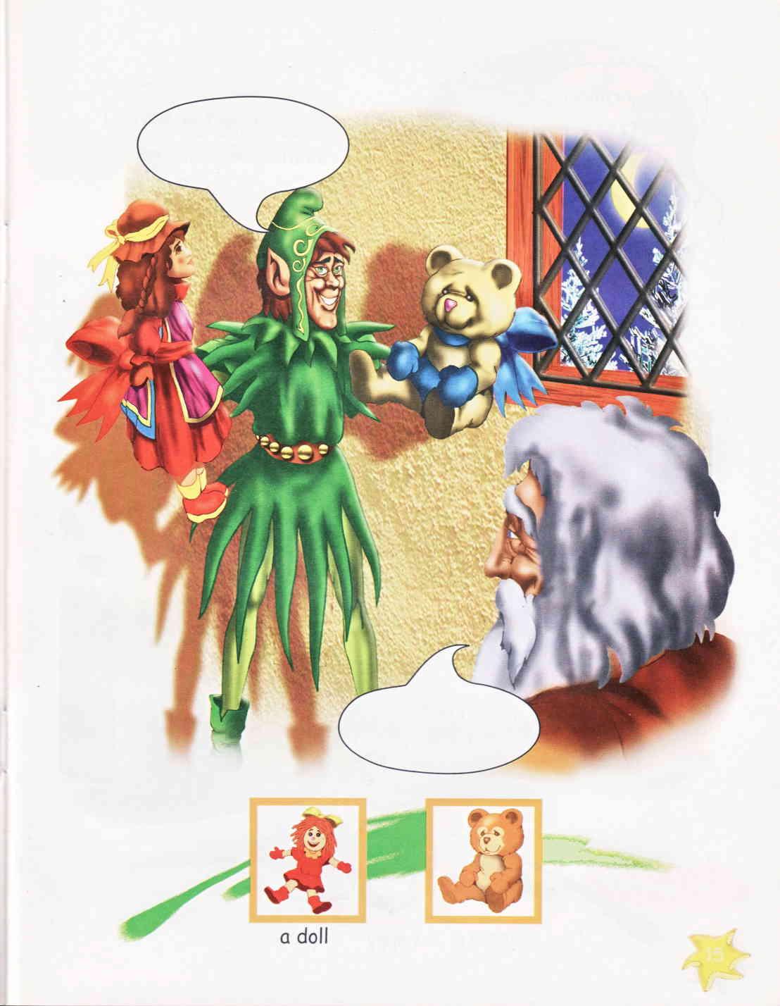 • A script and a list of props for the production of the story as a play. This will activate the students' passive language by encouraging its use in a real situation (the staging of the play). It will also help teachers by illustrating how the play can be staged simply and effectively.