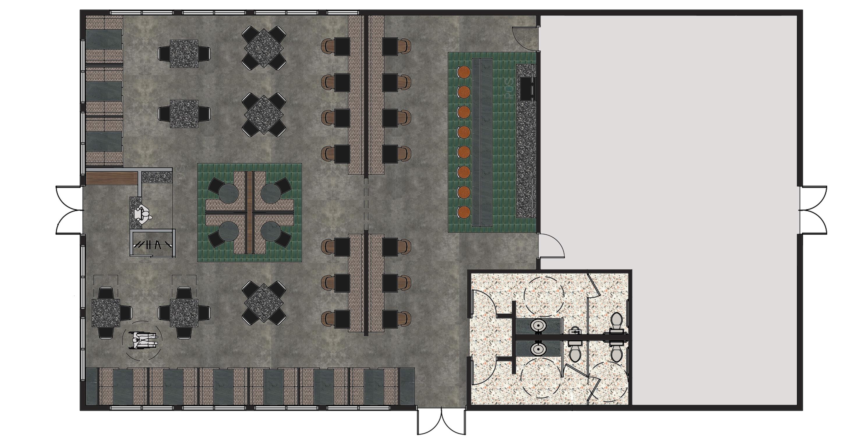 • Incorporating the 5% of total tables in the space to be ADA accessible by the main entrance for convenience.