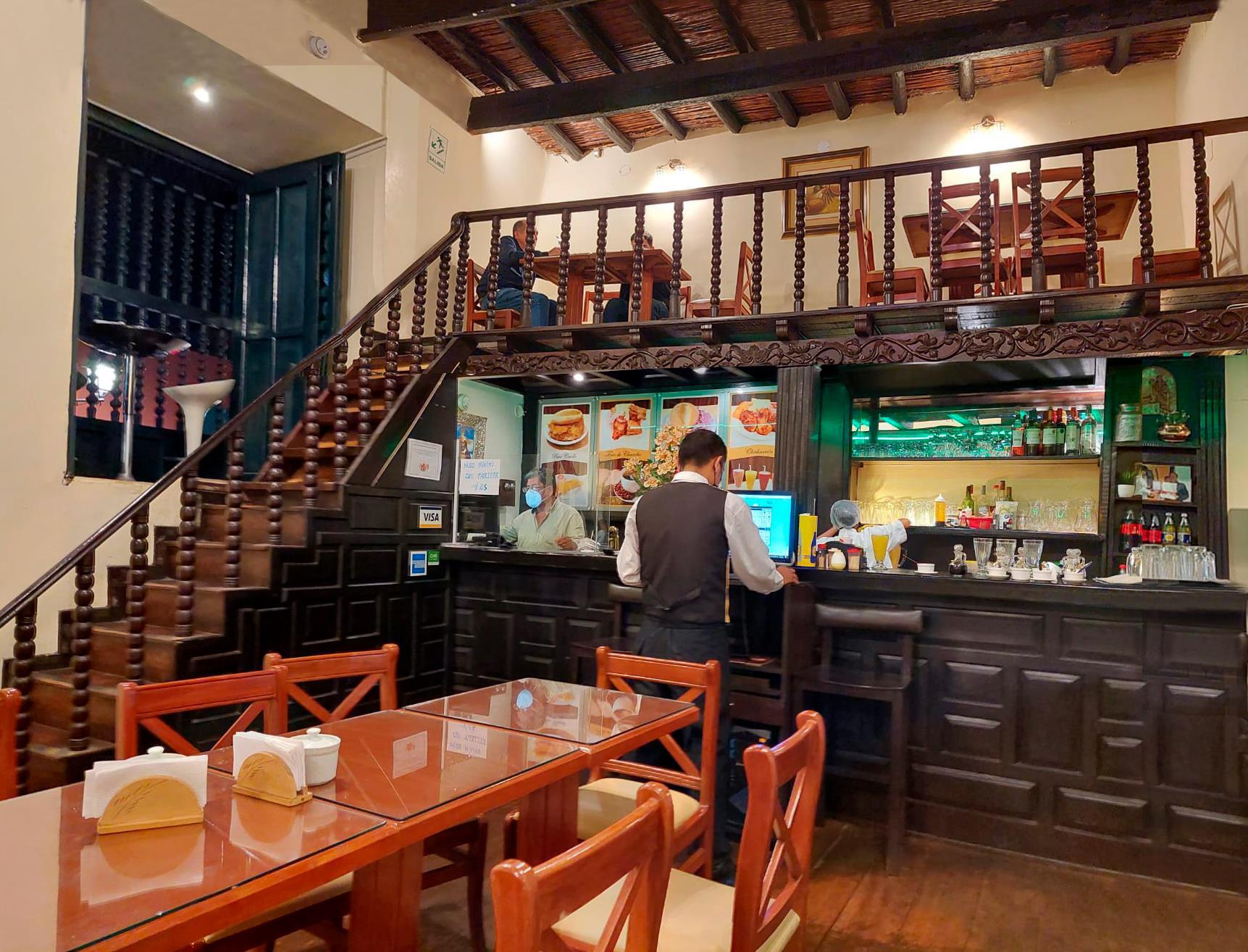 Entre las edificaciones coloniales habitadas por comercio, encontramos el Salón de Té ‘‘Santo Domingo’’.. Un espacio acogedor, gracias al material de madera, los mobiliarios y la iluminación amigable, donde refleja un ambiente tranquilo para conversar o meditar. Además, de tener una vista esplendida hacia la Plaza de Armas.