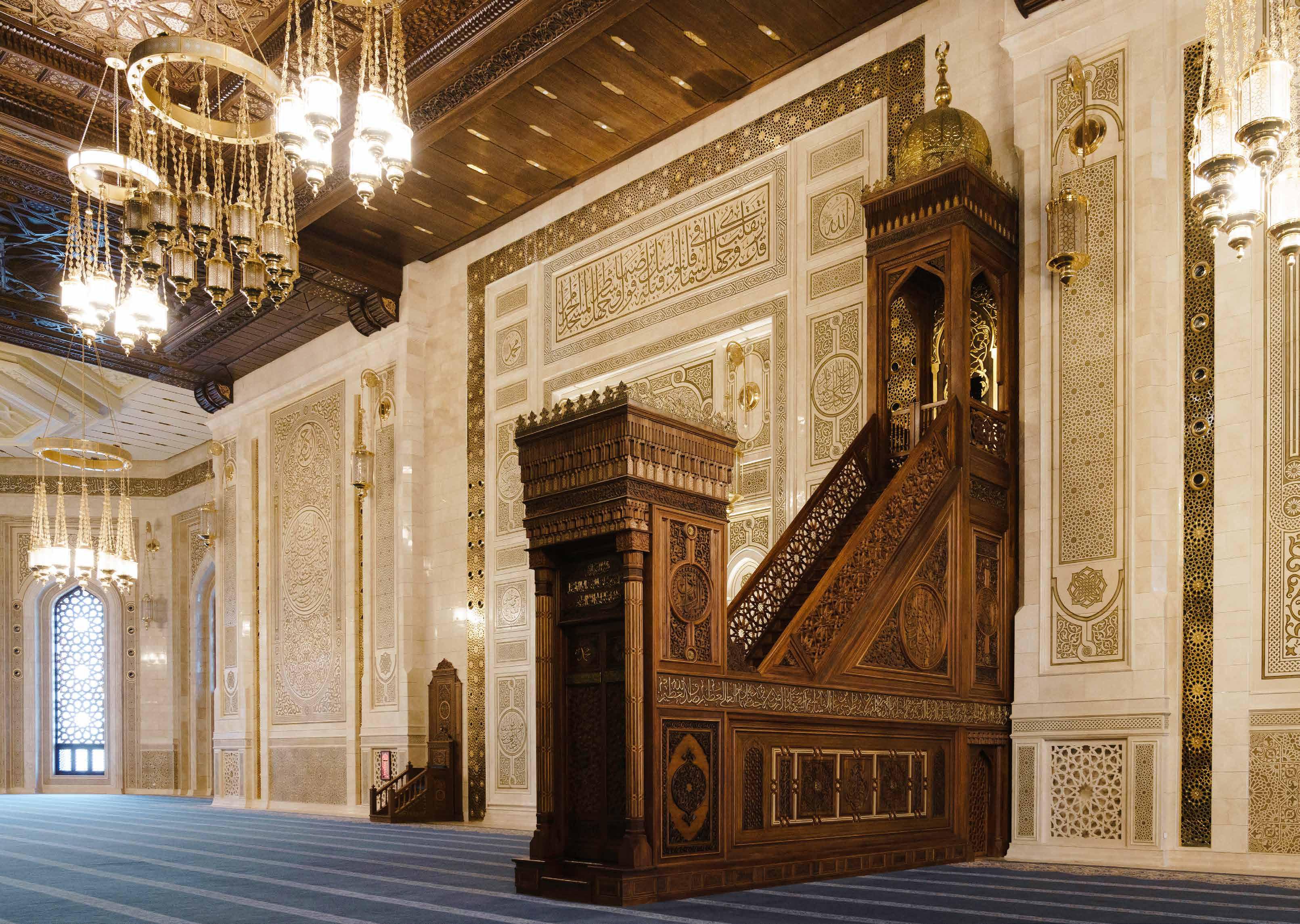 InsideMasjidMisr(One world record for the tallest pulpit and two more for the largest and the heaviest chandelier were broken when the mosque was opened in 2023.)