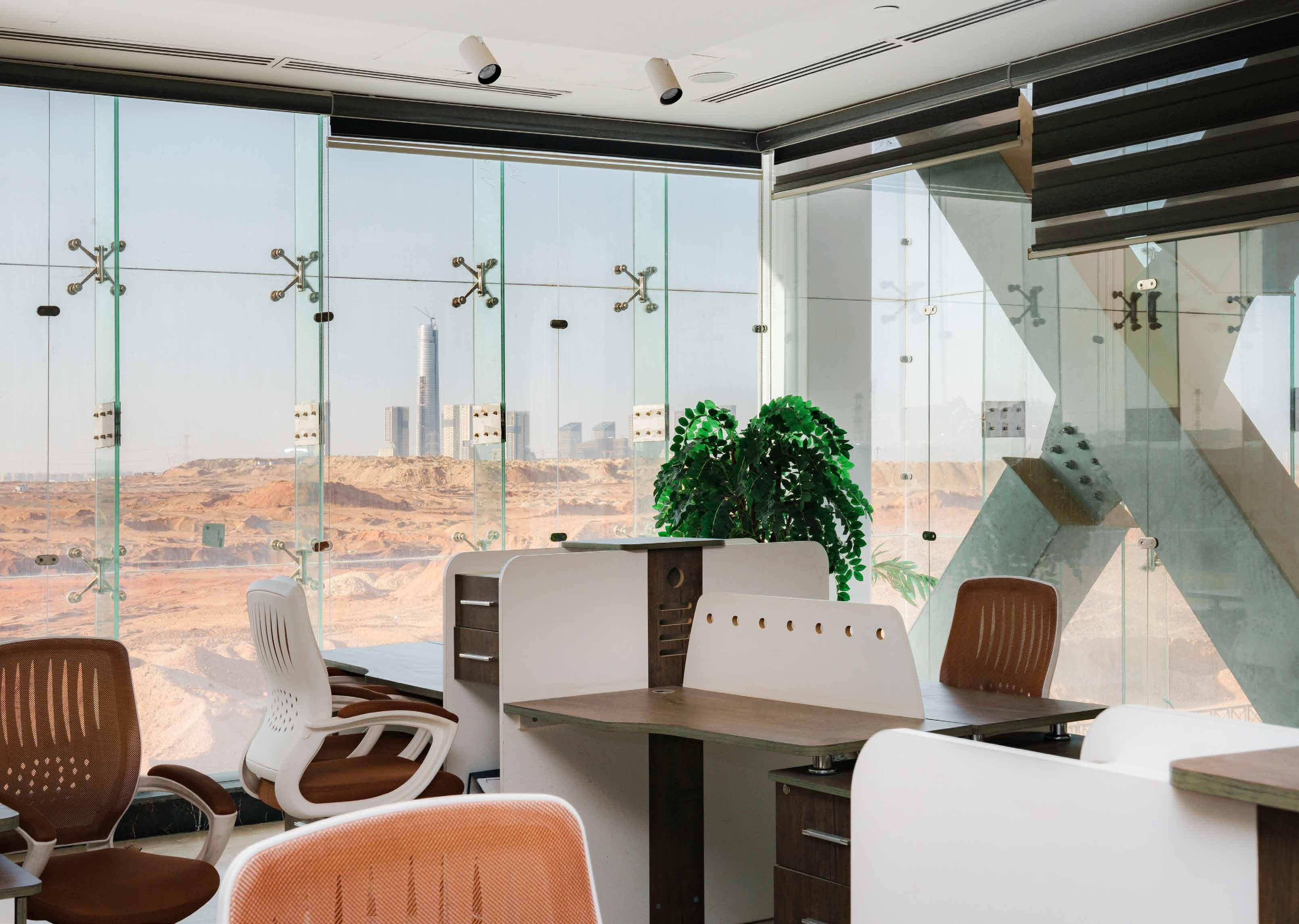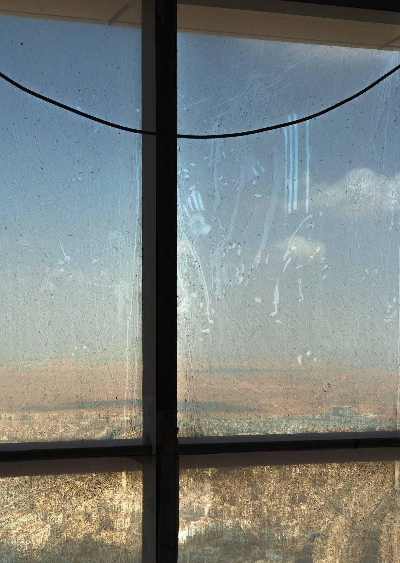 WindowintheIconicTower(The still hollow core of the Iconic Tower rises 394 meters above the dunes as the tallest building in Africa.)