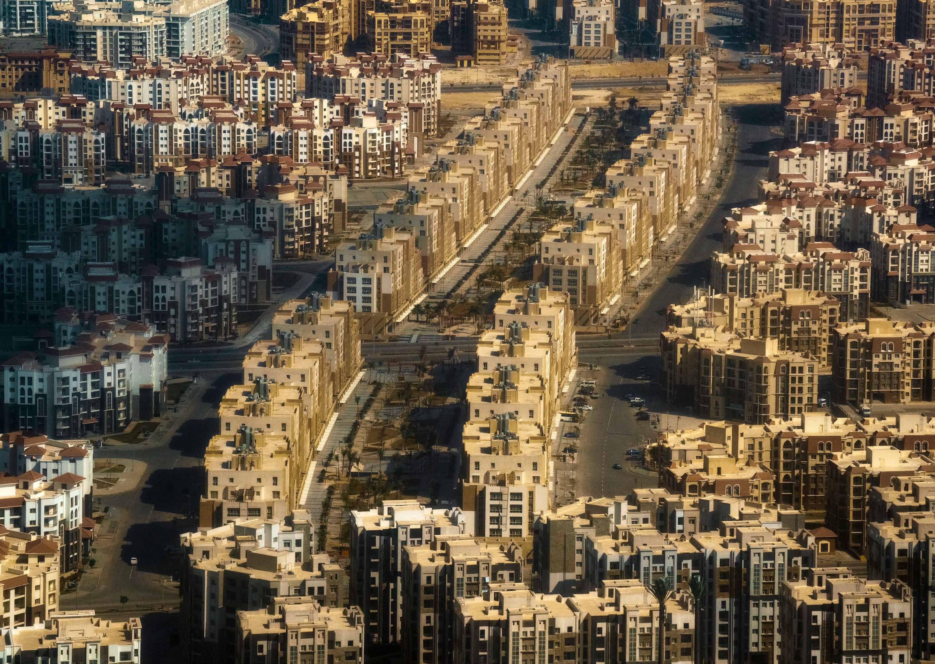 Ägyptens „New Administrative Capital“ wurzelt tiefer in der Bautradition des Landes, als vielen bewusst ist. Scheinbar seit Urzeiten haben die Herrscher des Landes auf Bauwerke gesetzt, um ihre Stellung zu festigen und ihrVermächtnis zu verewigen. Die im Abstand von fast 2000 Jahren eingeweihte Stadt Echnatons aus dem 14. Jahrhundert v. Chr. und die Stadt des 10. Ramadan von Präsident Sadat aus dem 20. Jahrhundert n. Chr. stehen heute als Vorboten einer ungewissen Zukunft. Erbaut auf der Grundlage von Versprechungen ketzerischer Könige, die letztlich durch Schimären ihrer eigenen Schöpfung vereitelt wurden, wurden beide Städte im Dienste von Wüstenträumen errichtet und versprachen neue Zufluchtsorte für die wimmelnden Bürger des Landes. Jahrzehnte später sieht es so aus, als würde Ägyptens neueste Stadtentwicklung, die derzeit 50 Kilometer östlich von Kairo entsteht, diesem Beispiel folgen. Die 2015 angekündigte neue Hauptstadt, die mit dem höchsten Turm und der größten Kathedrale des Kontinents angepriesen wird, soll eine düstere Hommage an die reiche Geschichte des Landes werden. Während die ägyptischen Medien weiterhin von der Majestät und dem Modernismus der neuen Stadt schwärmen, werden die Einwohner des Landes immer skeptischer gegenüber den angeblich mit Solarzellen bestückten Dächern der neuen Verwaltungshauptstadt. Mit seinen umweltschädlichen Glasstrukturen und einem künstlichen grünen Fluss - einer müden Hommage an den Nil - zeigt sich die Torheit dieses Megaprojekts in seinen absurden Ausformungen. Das in verschiedene Bezirke aufgeteilte Projekt, das das ägyptische Leben nach Funktionen trennen soll, wird von seinen Erbauern für seine technische Brillanz gelobt, aber die kommerziellen Arterien dieses Projekts scheinen immer labil zu sein, da die Kritik an seiner Finanzierung - und letztlich an seinem Zweck - immer lauter wird. Derzeit ist die Stadt für die Ägypter nur durch die prospektiven Erzählungen ihrer militärischen Führer oder die vorausschauenden Projektionen der größten Investoren des Projekts wahrnehmbar. In diesen fiktiven und virtuellen Vorstellungen ist die neue Verwaltungshauptstadt mit üppigen Alleen, wenig befahrenen Straßen und Gebäuden, die vorsorglich als „ikonisch“ bezeichnet werden, eine Trugbild für die Ägypter, die nach Kairo reisen. Während sich die Reklametafeln, die