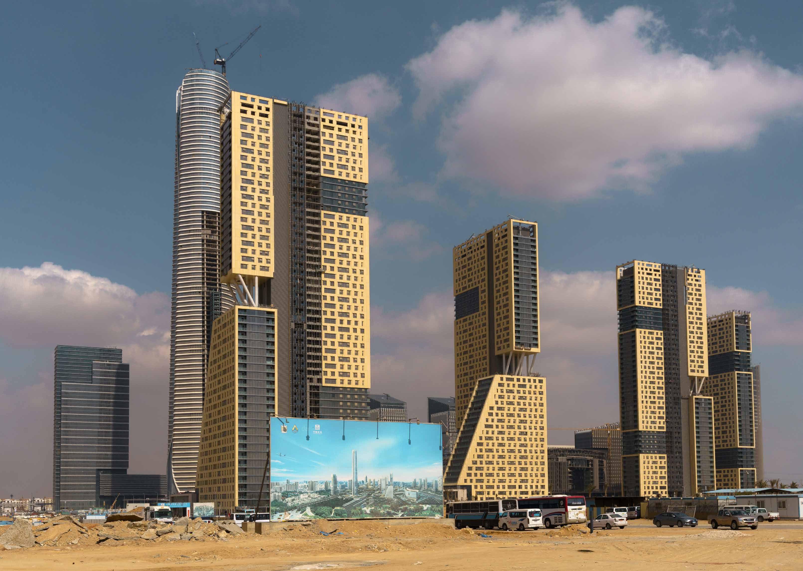 Skyscrapersunderconstruction (The dates for the completion of the first phase of the new capital are repeatedly postponed since the original date of 2020.)
