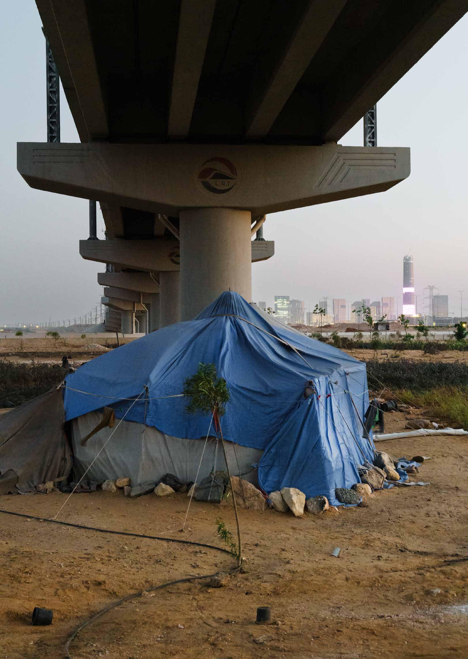 Workerstent (One of the tents under a railroad bridge where Al Tayeb and his colleagues have been living and working for over two years.)