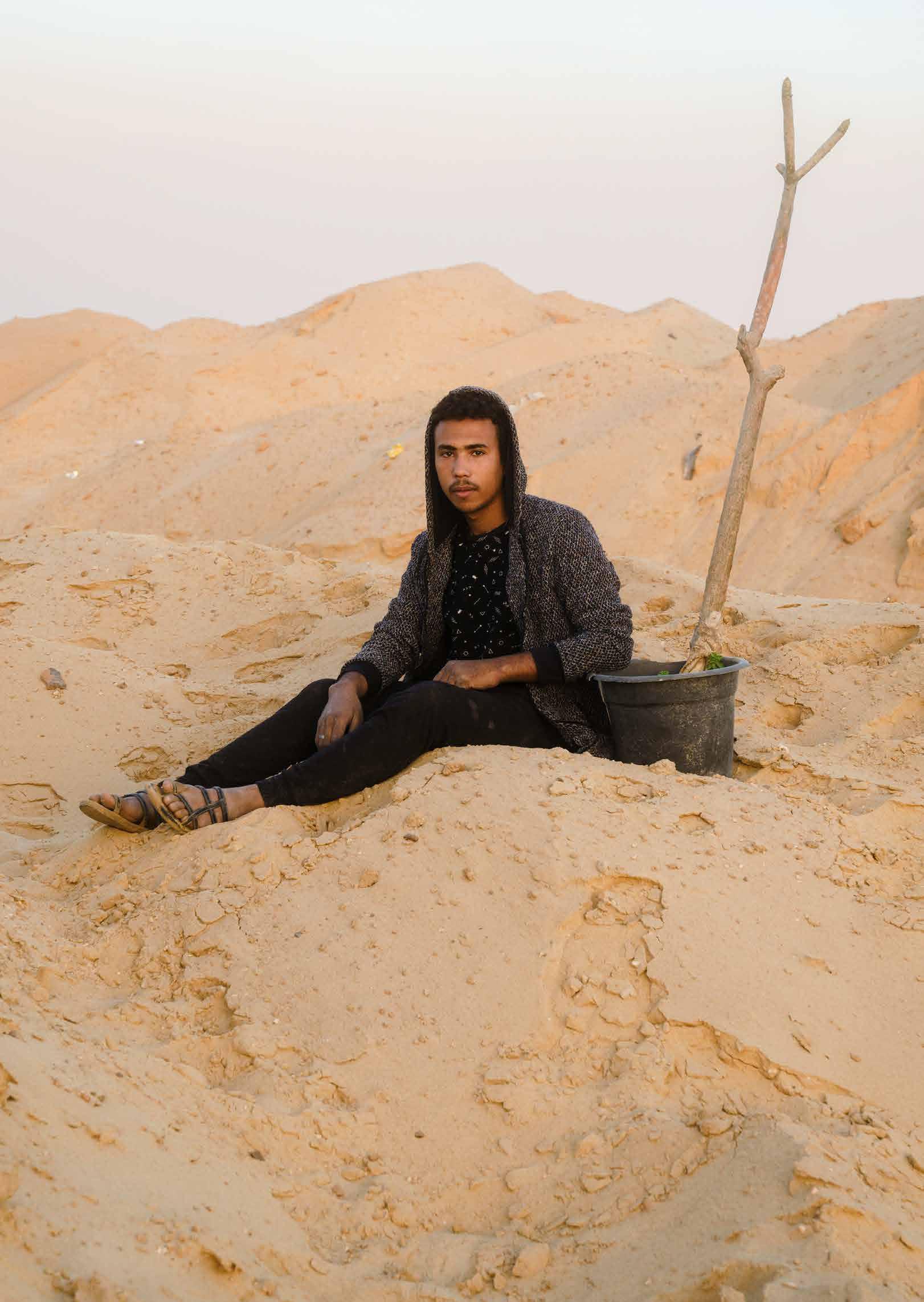 AlTayeb (A worker who lives with his colleagues in tents on the outskirts of the city and plants trees for the residential districts.)
