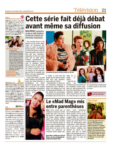 sieurs mois (seulement 69 000 téléspectateurs la semaine passée), sont la cause de ce changement, comme le confirme NRJ12. La chaîne de la TNT a précisé que l’émission animée par Ayem Nour et sa bande de chroniqueurs était «suspendue». «Nous réfléchissons à son retour, plus tard dans l’année», explique une attachée de presse de la chaîne. Hier soir, le «Mad Mag» a été remplacé par la rediffusion d’un épisode de la dernière saison en date de «Friends Trip».